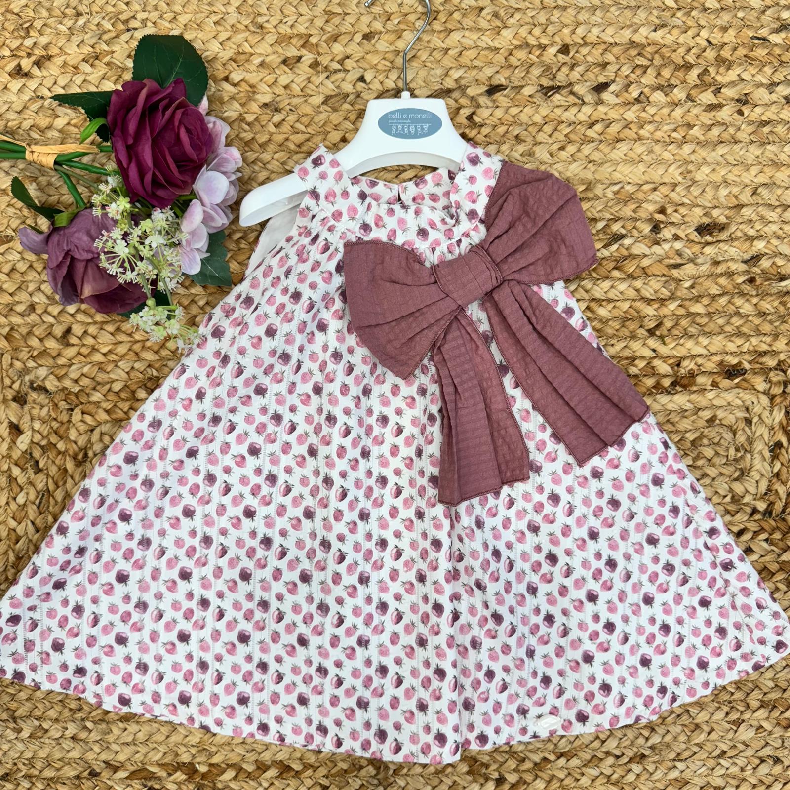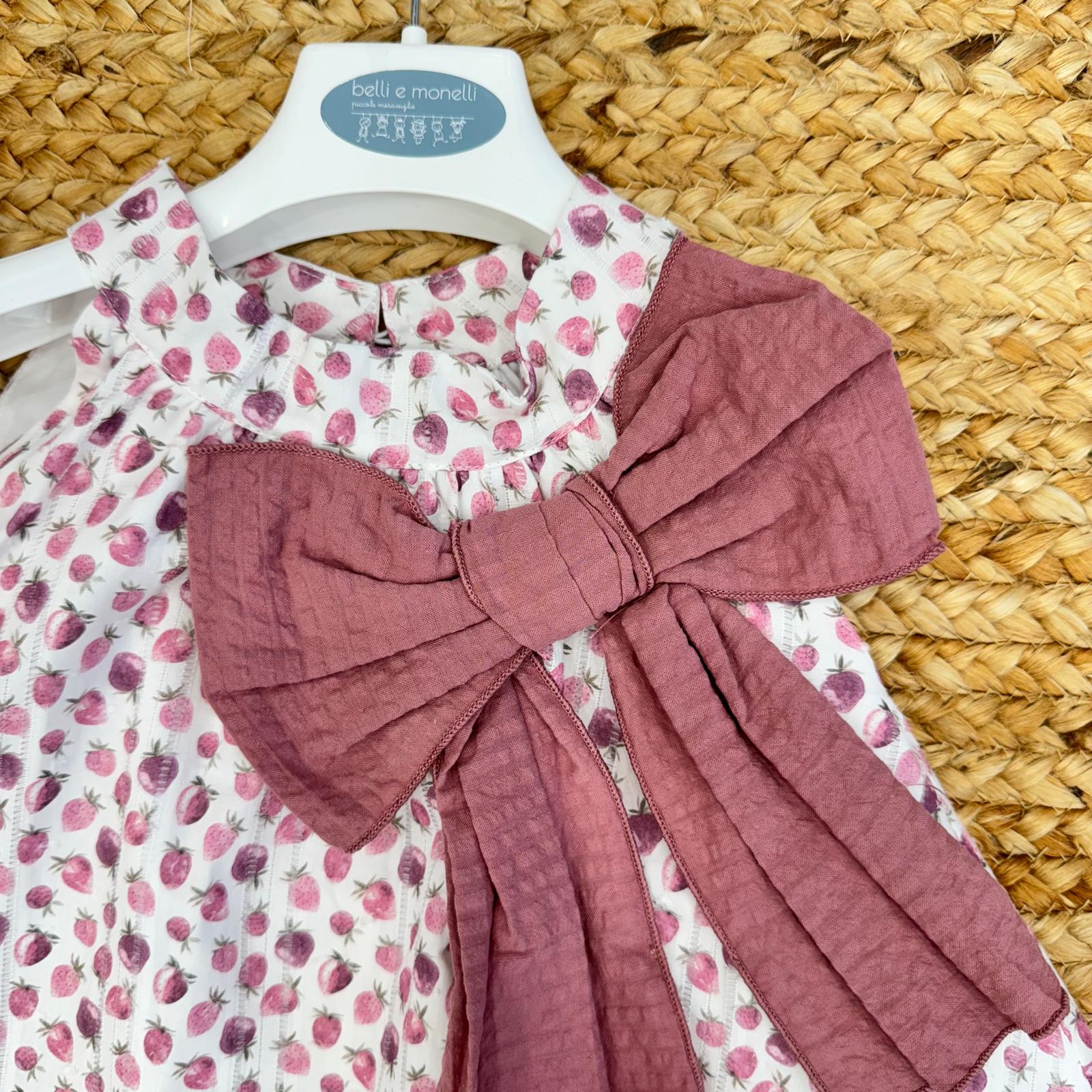ABITO BAMBINA CON FRAGOLINE E FIOCCO MAXI
