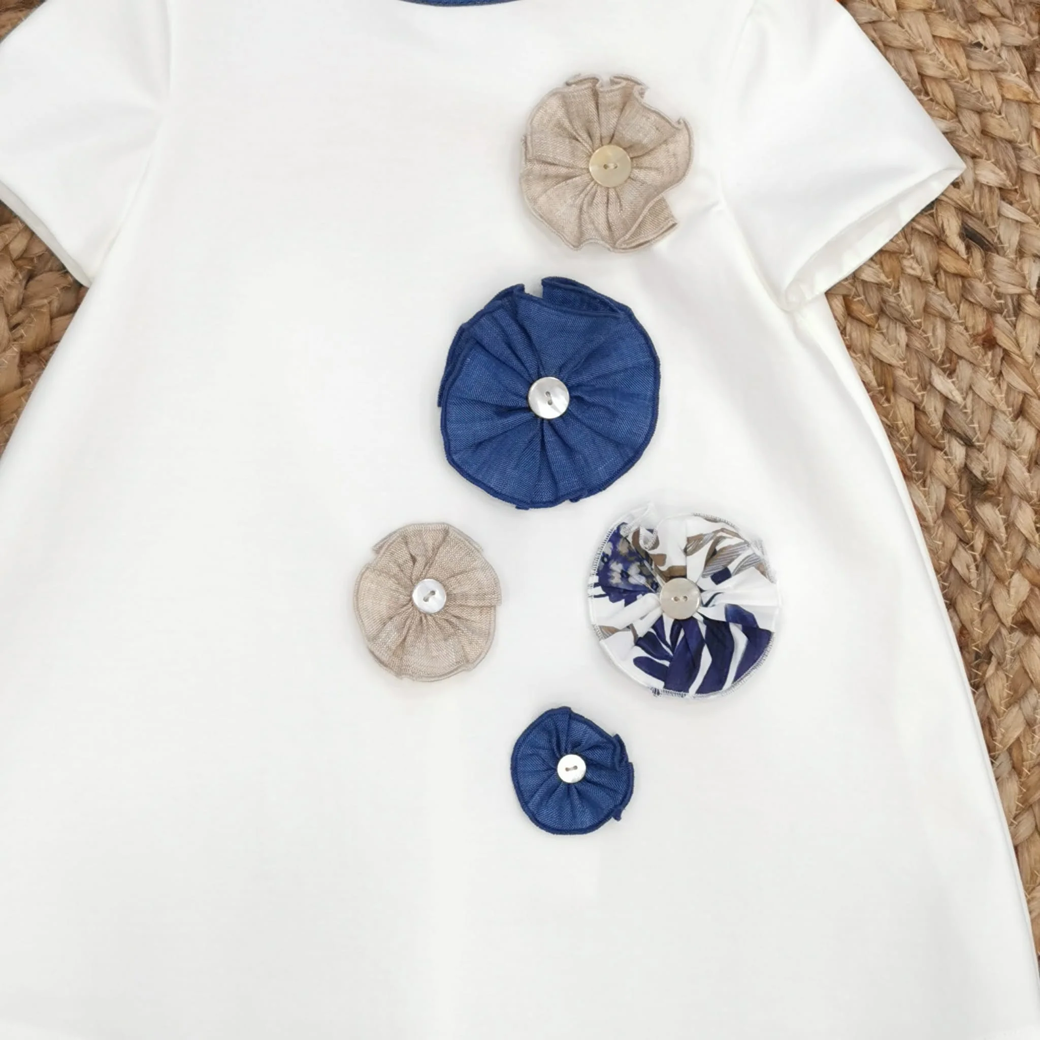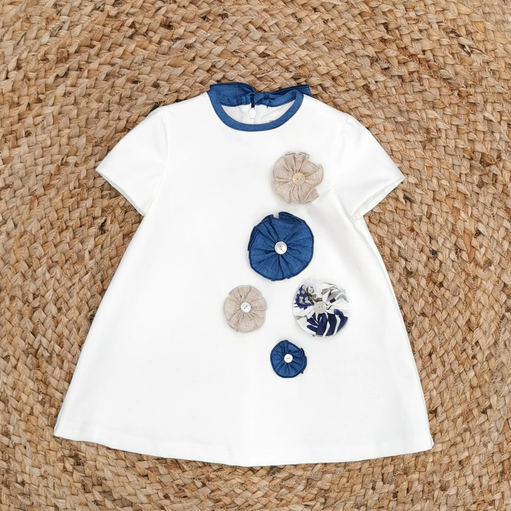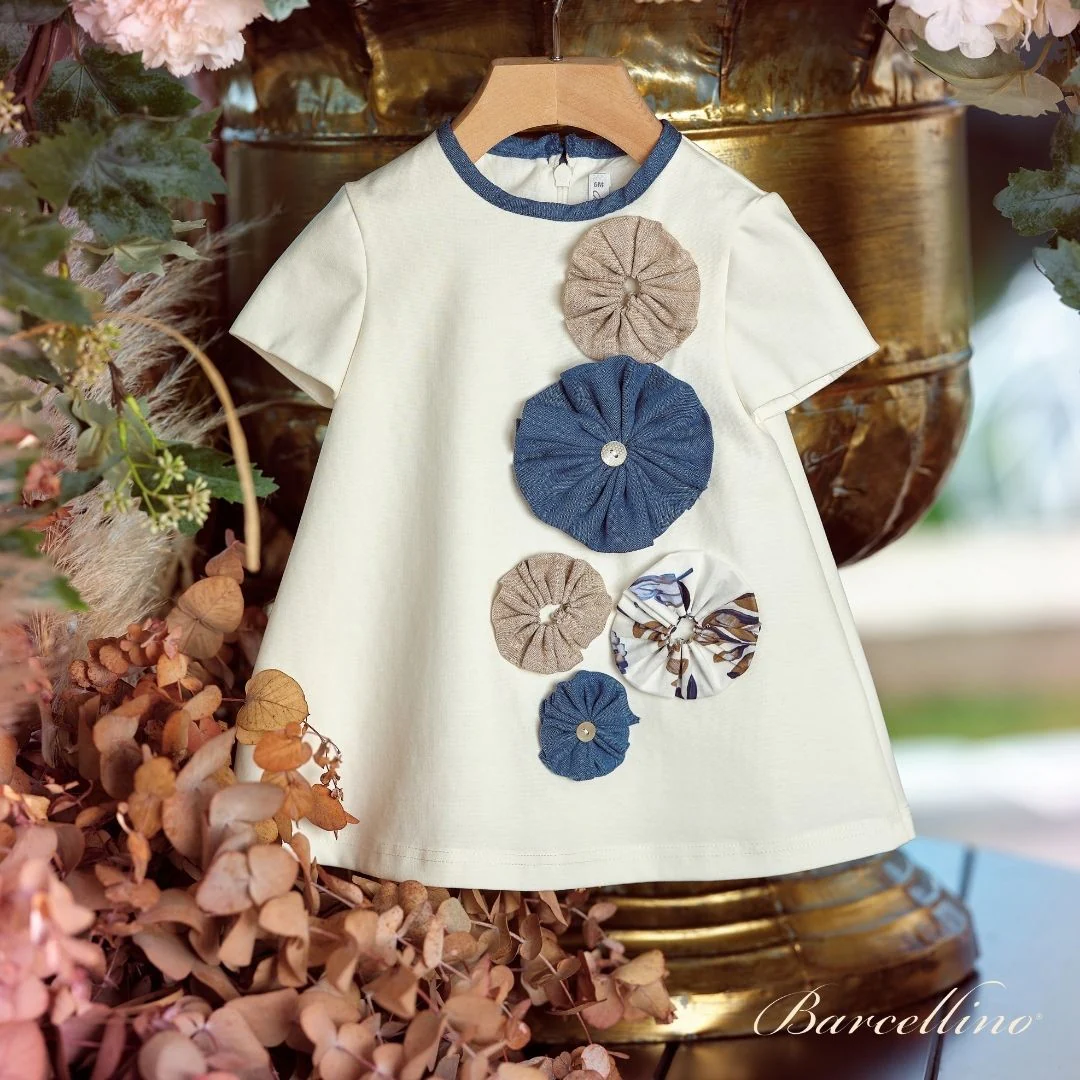 Abitino floreale con fiocco azzurro