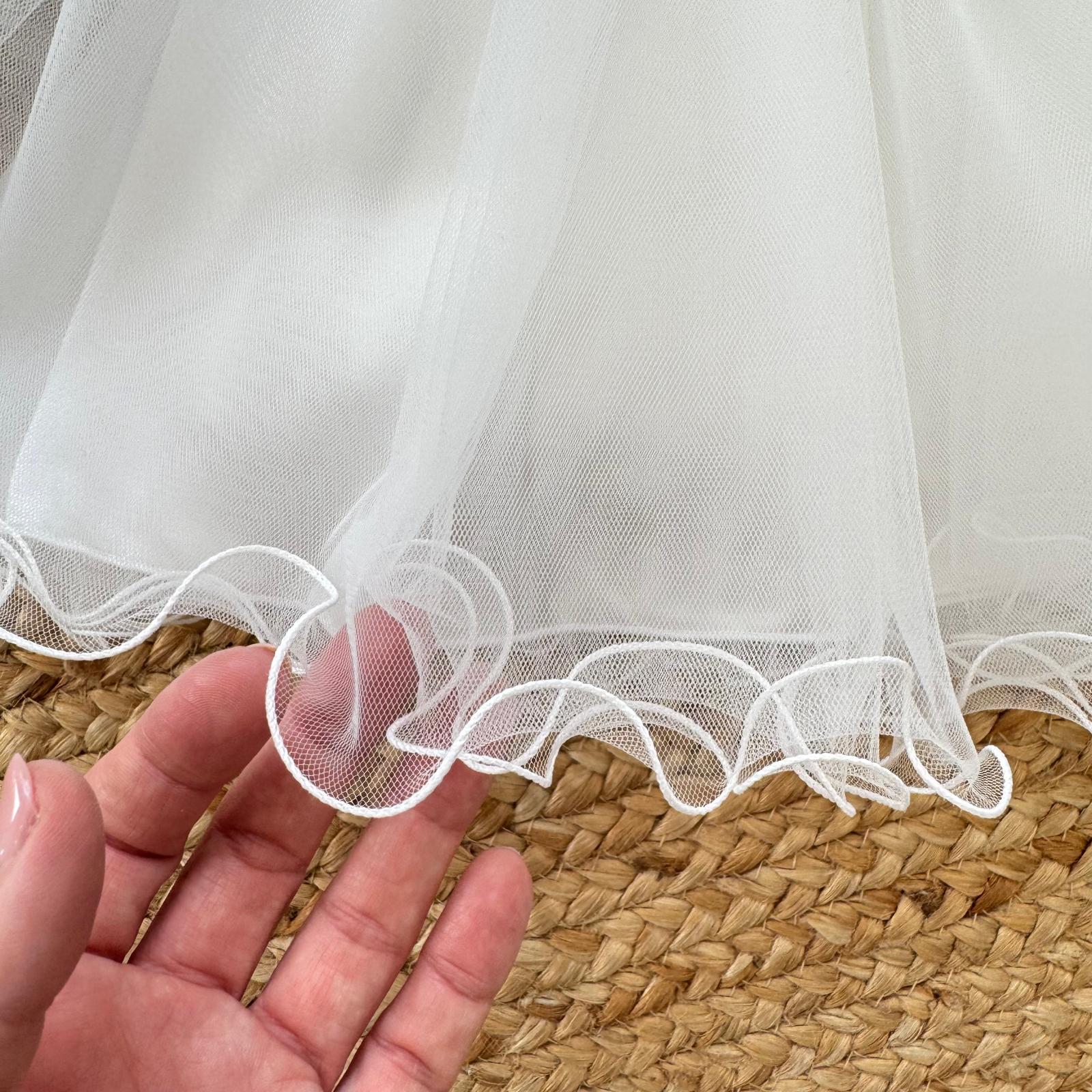 Abito battesimo bimba elegante con tulle floreale e fiocco posteriore