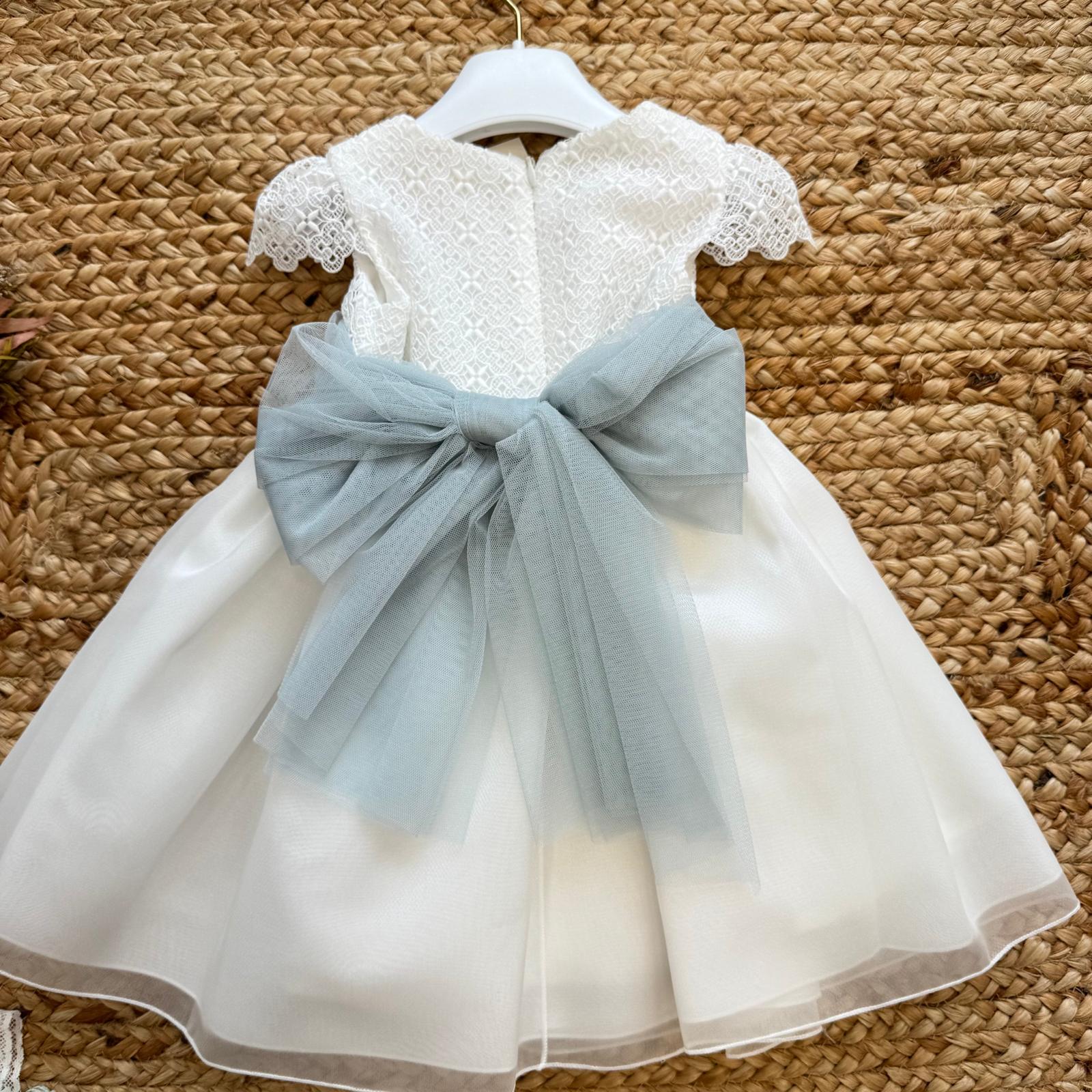 Abito battesimo bimba con pizzo ricamato e fiocco