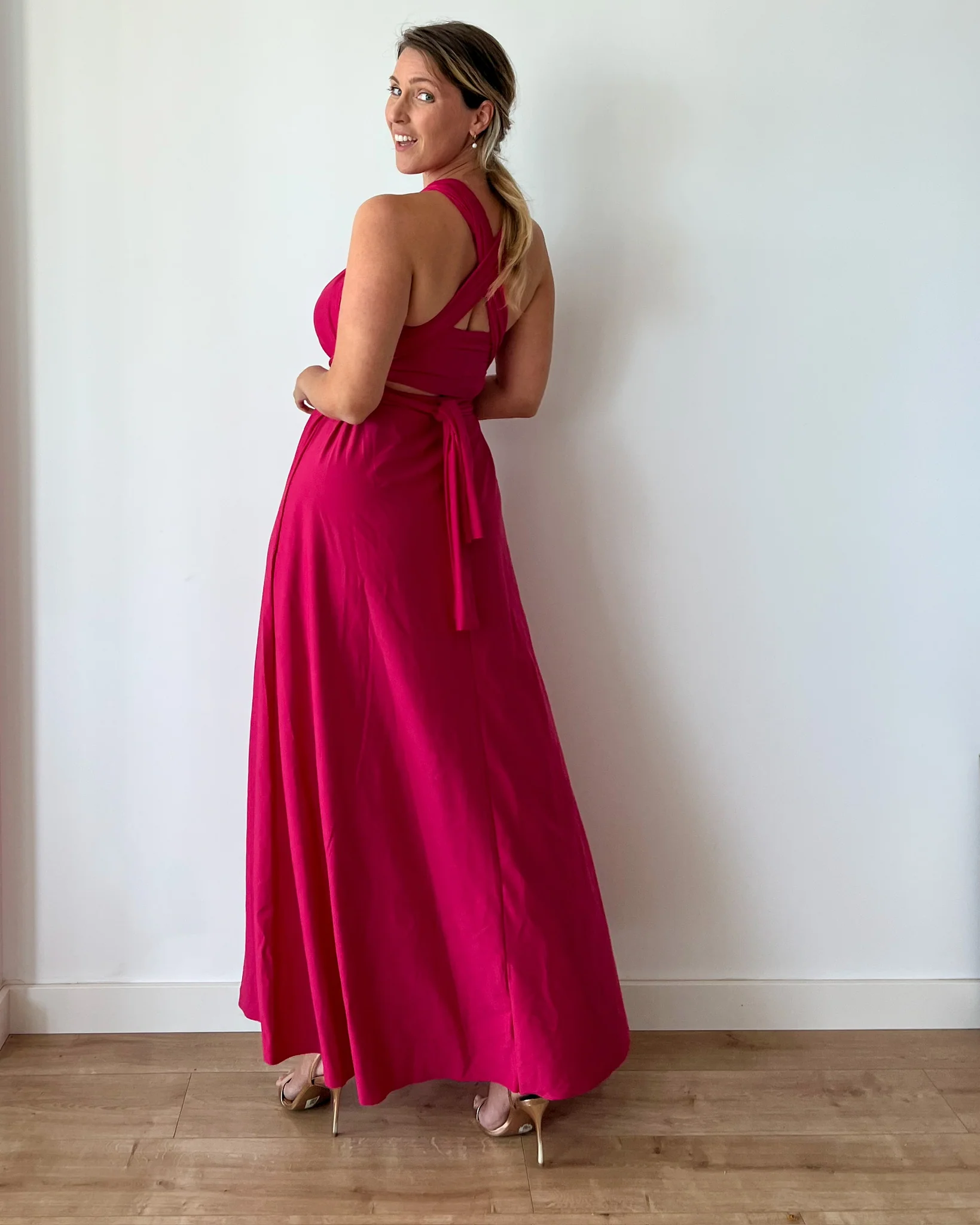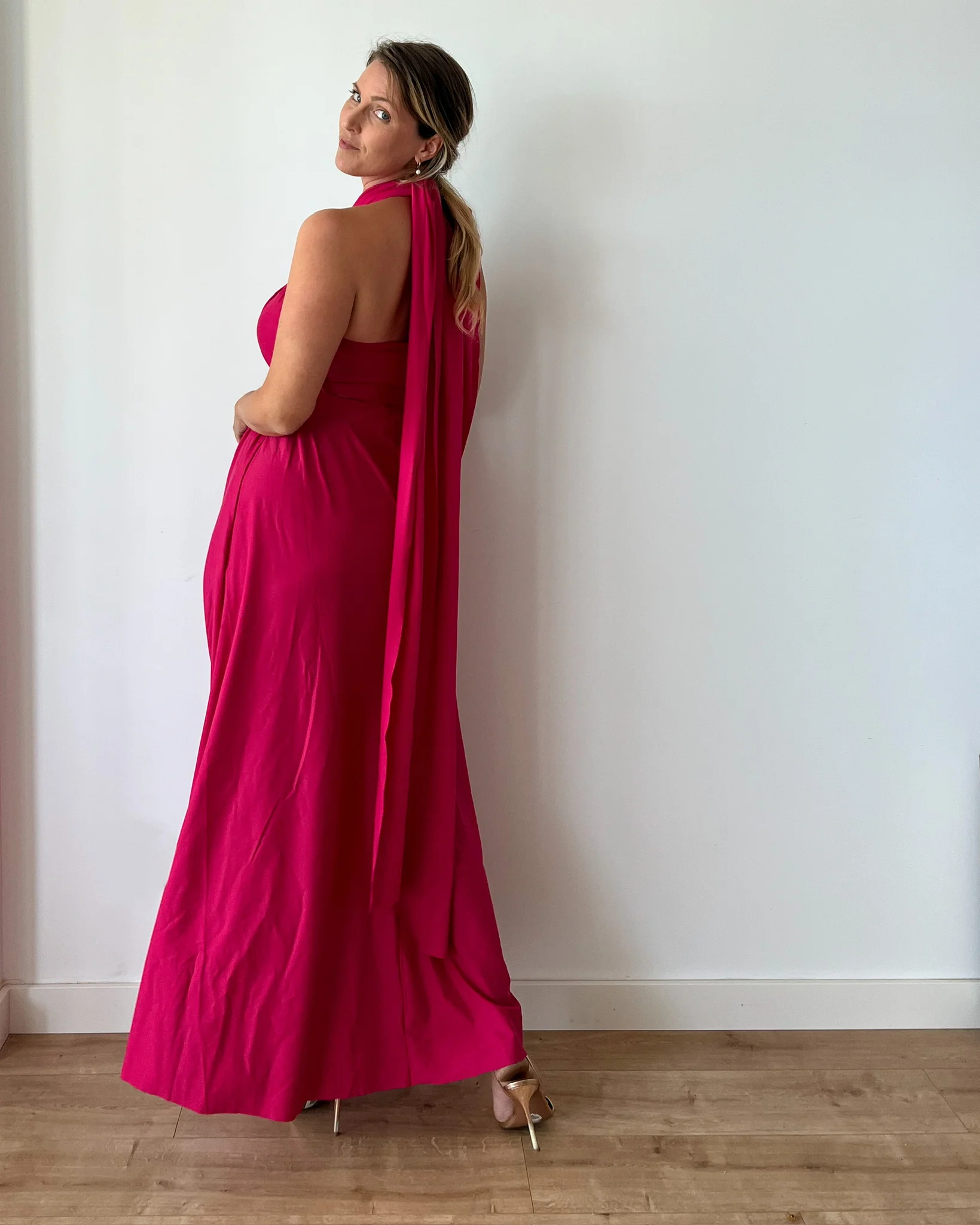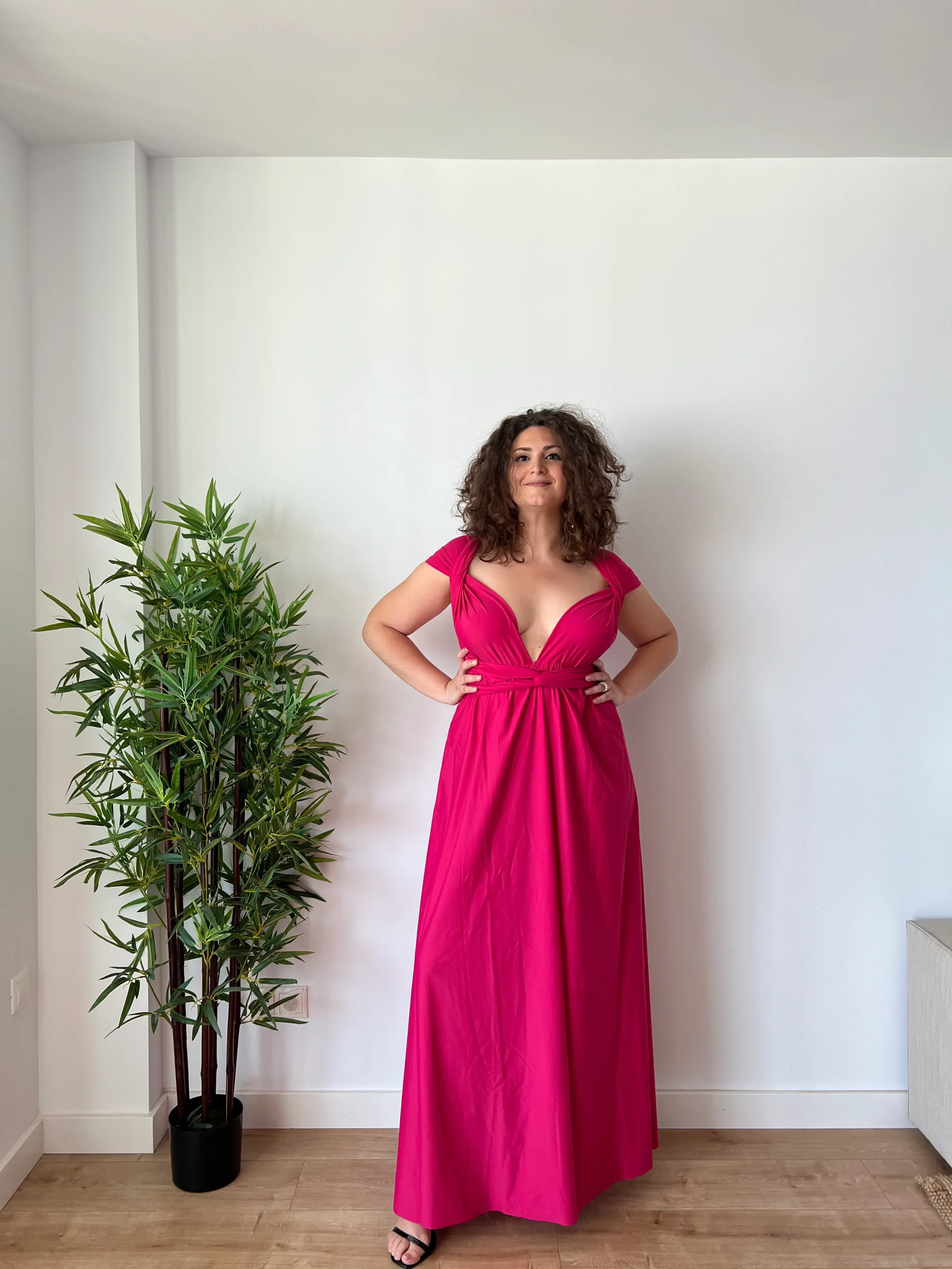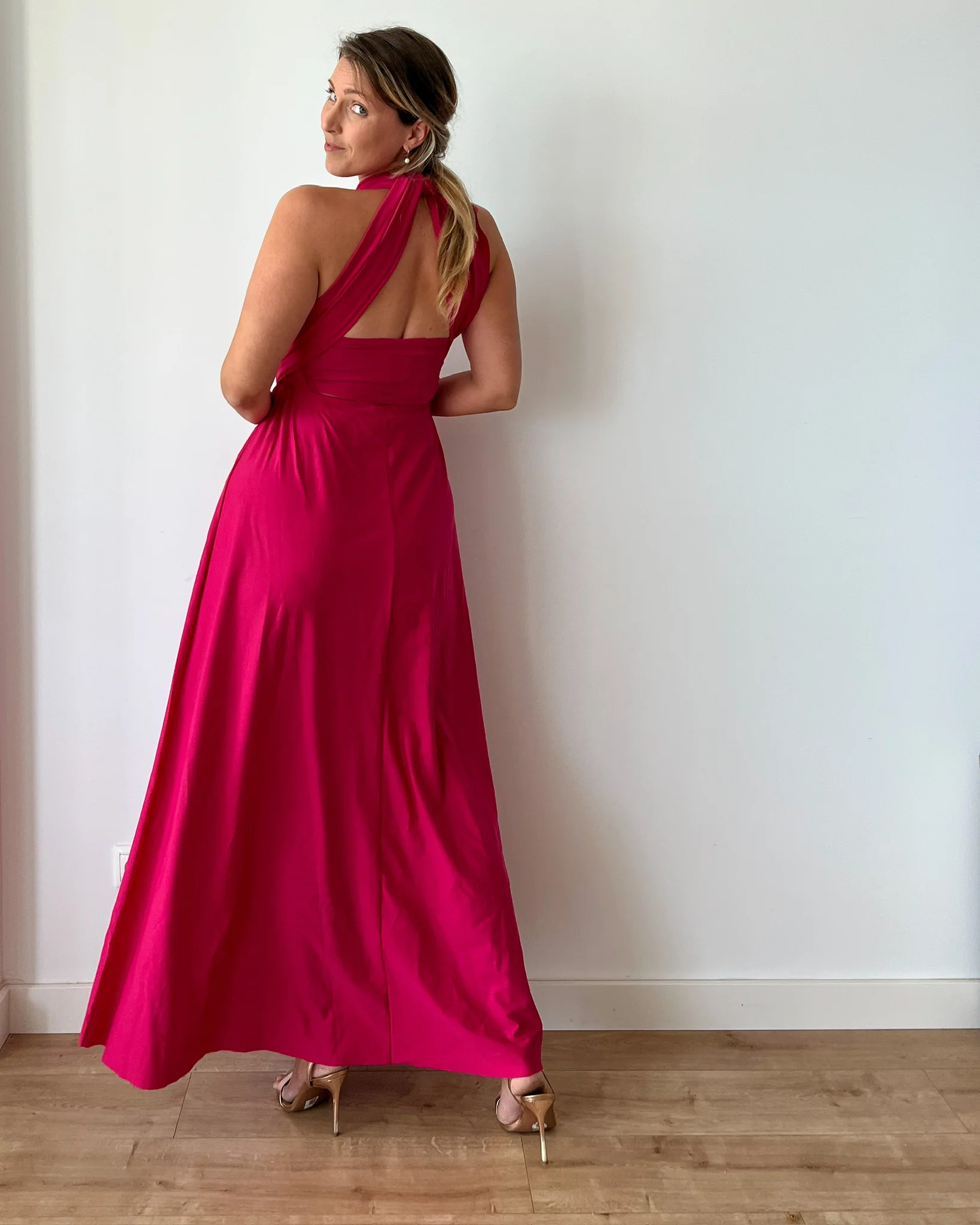 Puoi indossarlo in oltre 100 modi diversi: incrociato sul seno, con una sola spalla, con nodi scenografici sulla schiena, con drappeggi, intrecci, spalline larghe o sottili… ogni styling racconta una parte di te.