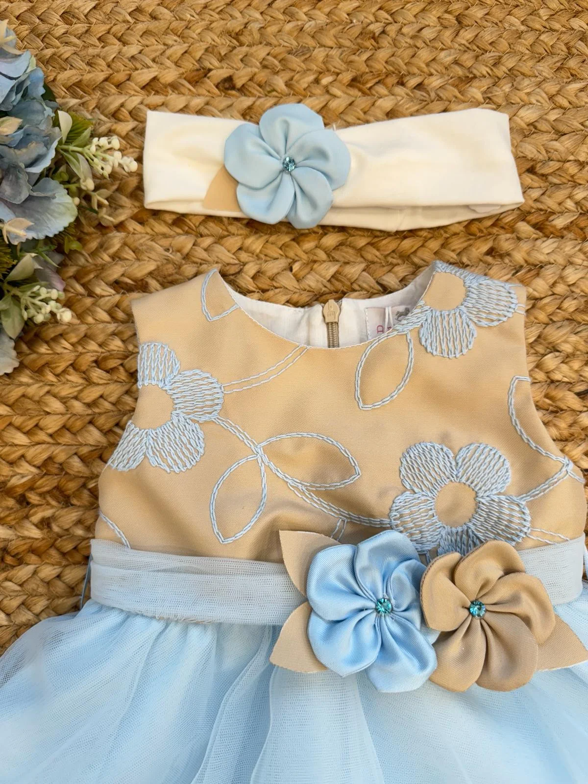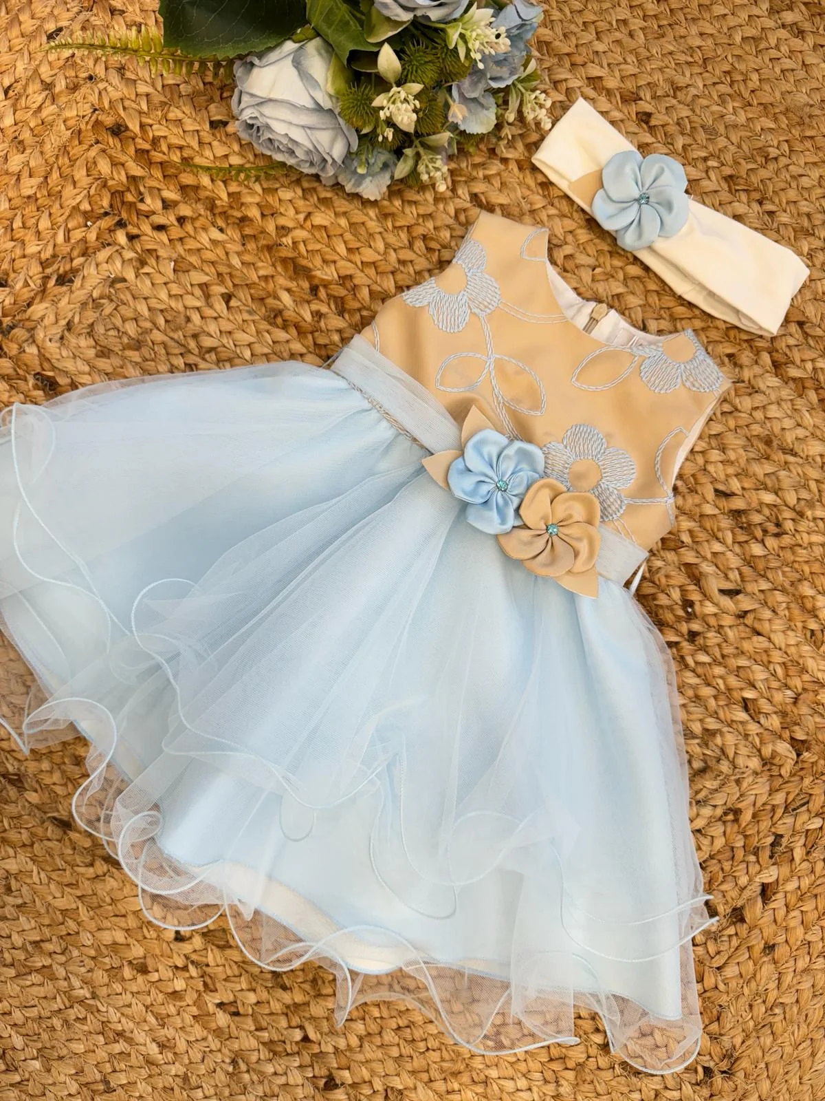 Abito ricamato Con Gonna In Tulle, Cintura Con Spilla Fiori. La Fascia È A Scopo Decorativo Non Inclusa Nel Prezzo
