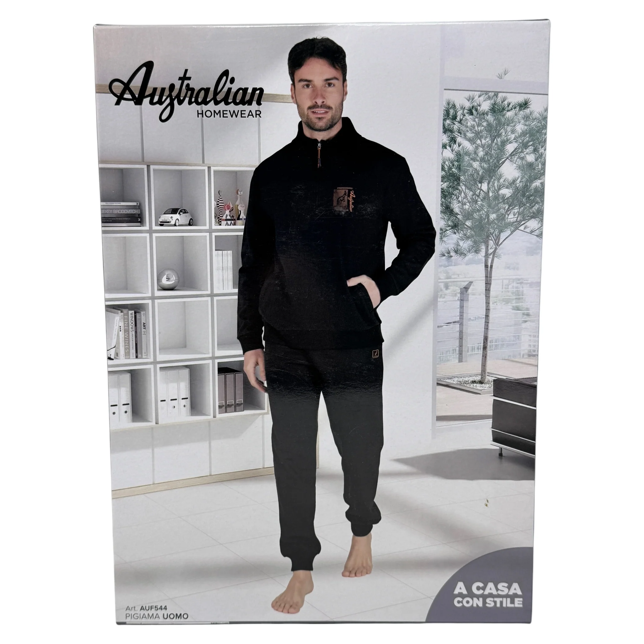 Auf544 Tut – -australian Homewear – Tuta Uomo In Felpa Mezza/zip Con Tascone E Pantalone Con Polsino
