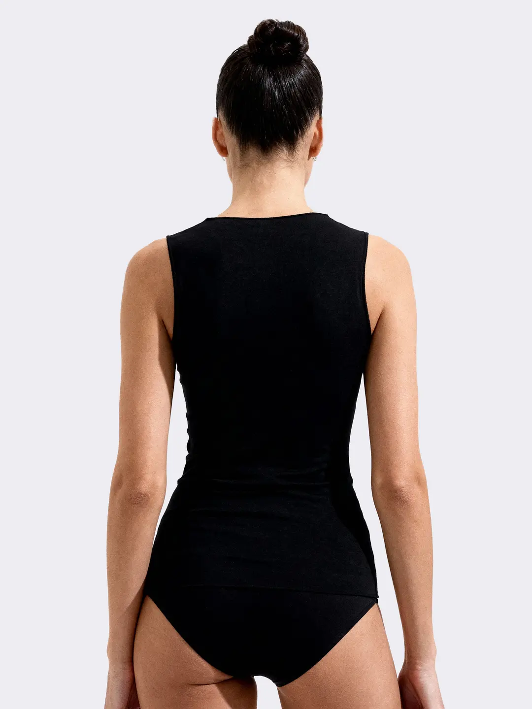 Maglia donna senza maniche con girocollo in cashmere e modal, perfetta come sottogiacca o da indossare da sola. Offre calore, morbidezza ed eleganza per il guardaroba invernale.