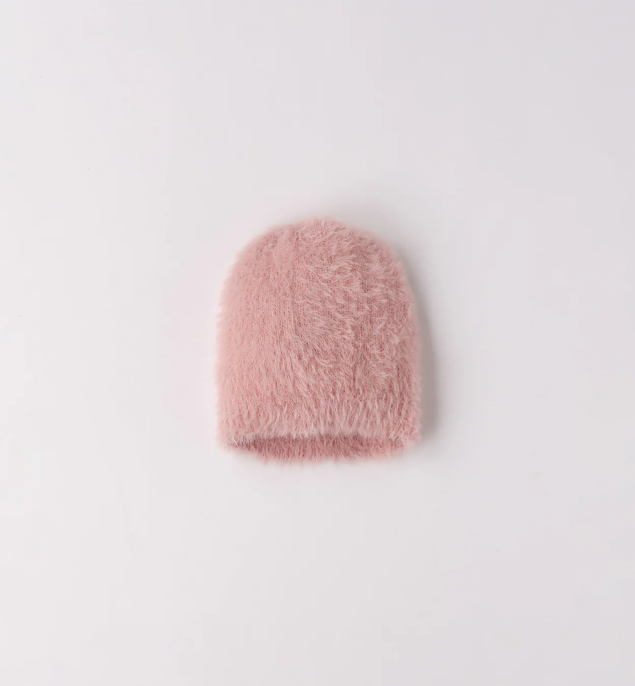 Cappello in maglia pelosa rosa per bambina, caldo e soffice al tatto. Un accessorio morbido e avvolgente, perfetto per proteggere dal freddo con un tocco delicato ed elegante.