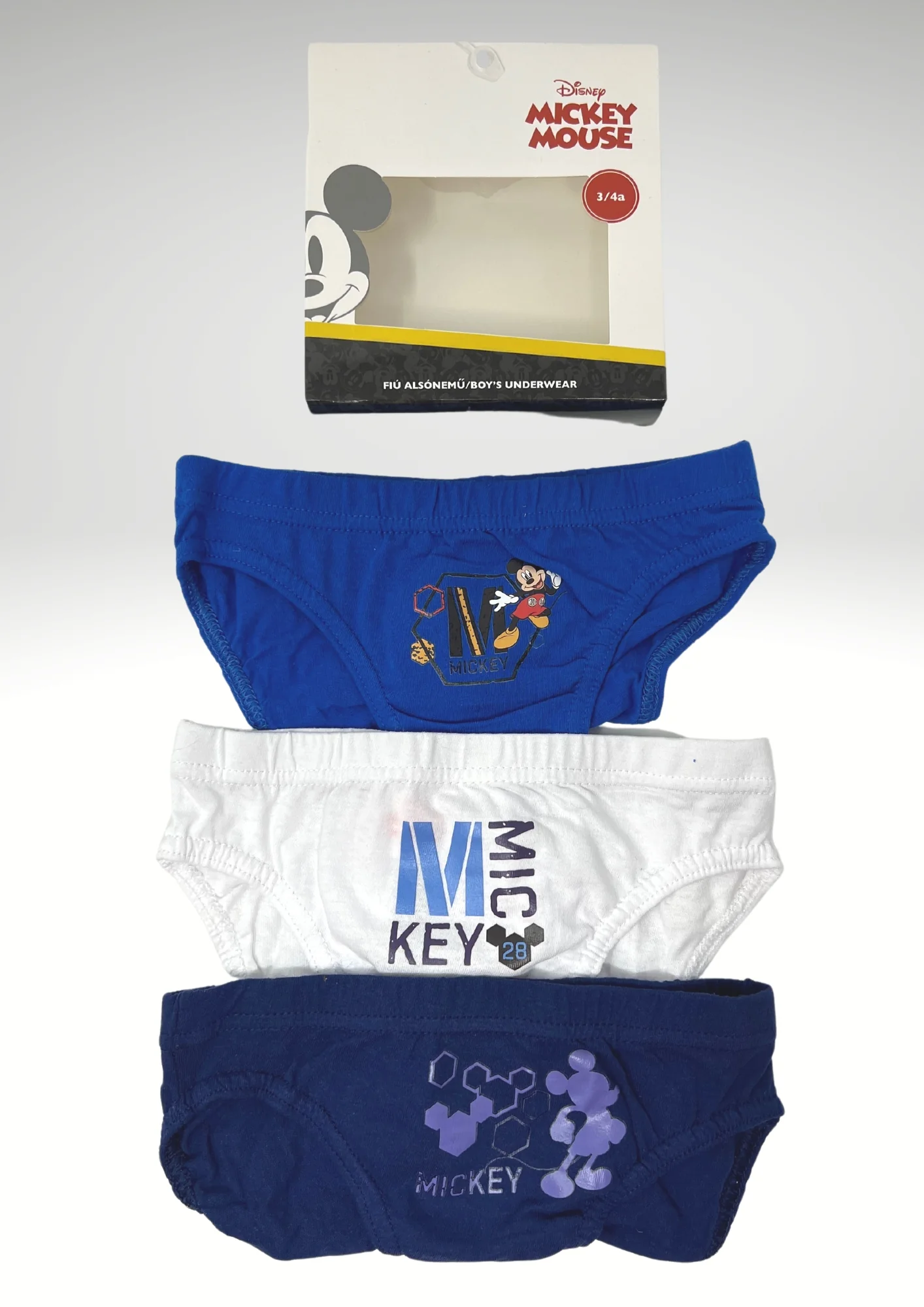 1505 Mic – Cartoon Mickey Mouse Conf. 3 Pezzi Slip Bimbo 100% Cotone Stampe/colori Assortiti