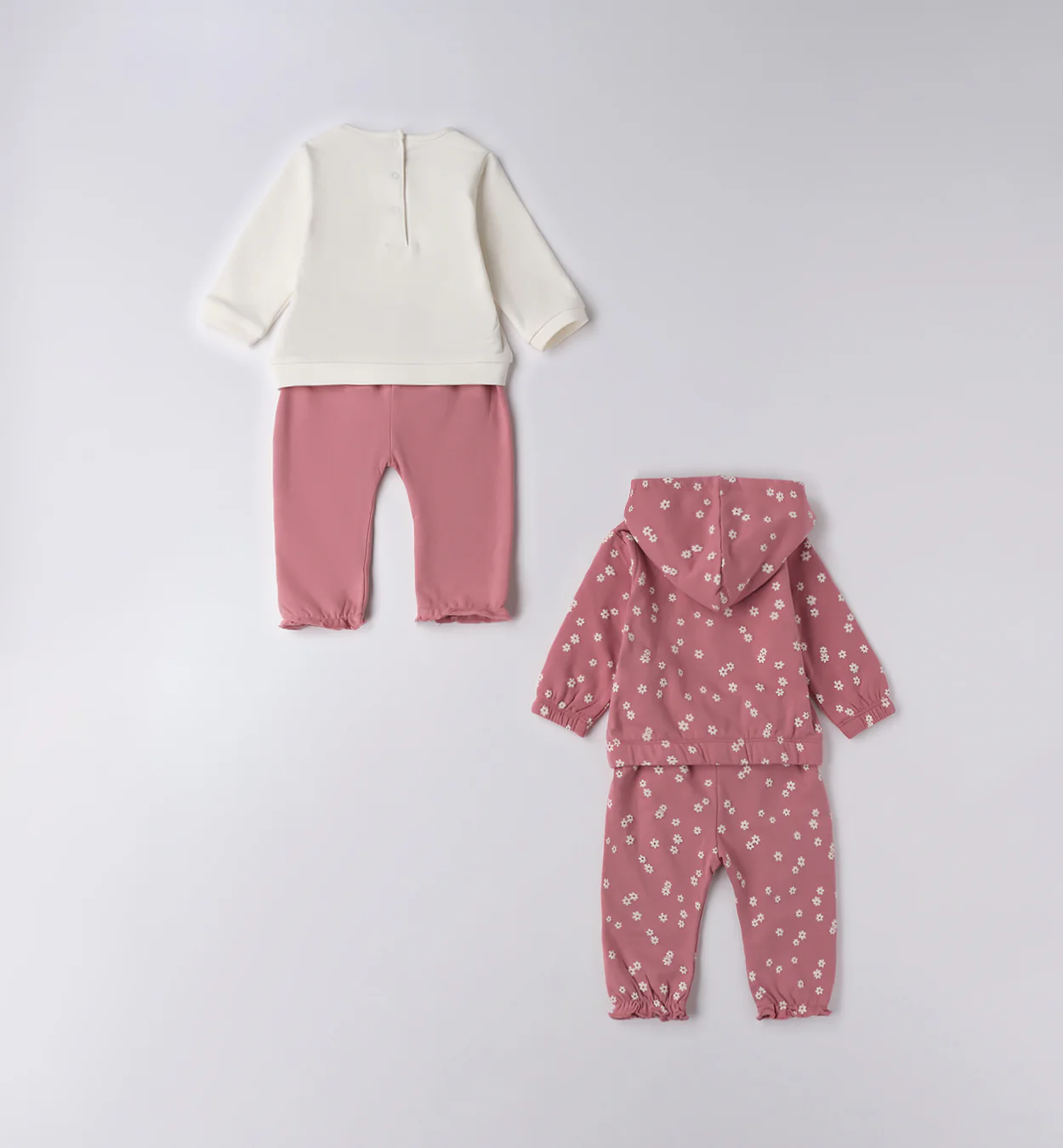 Coordinato due completi per neonata in caldo cotone. Il primo composto da maglia panna con ricamo orsetti e fiocchetti rosa, abbinata a pantalone tinta unita rosa. Il secondo include giacca con cappuccio e pantalone rosa con fantasia a fiorellini bianchi. Un set pratico e dolcissimo, ideale per i primi outfit quotidiani. Che ci crediate o no, i vostri bambini cambieranno il mondo.