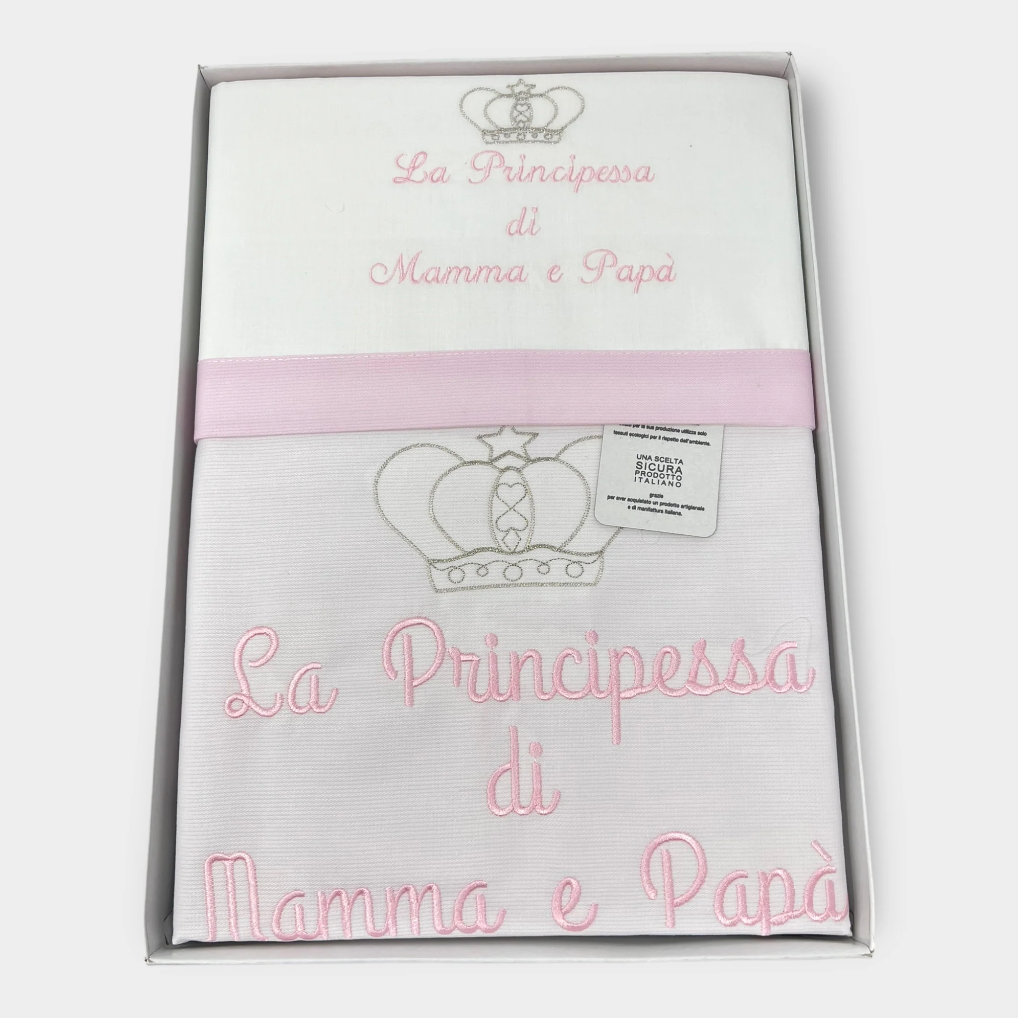 6006 – Dolci Sogni Coordinato 4 Pezzi Copriletto+completo Lenzuola Carrozzina In Piquet Cotone Ricamato
