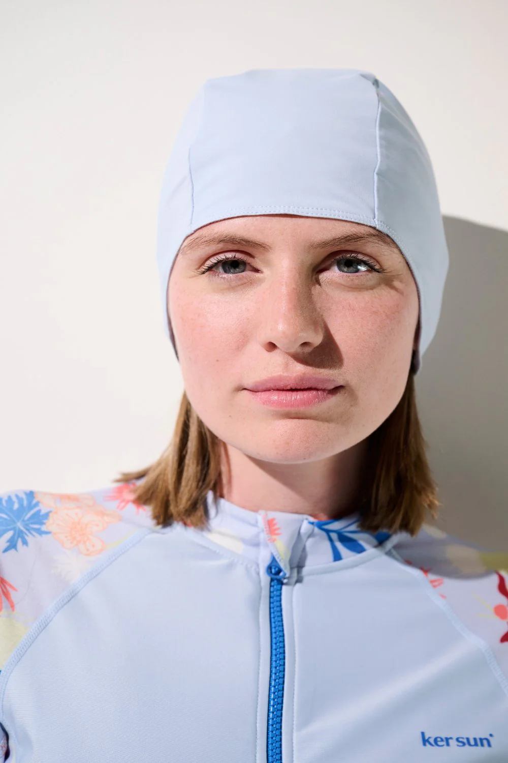 Questa cuffia da bagno ti accompagnerà in acqua proteggendo efficacemente il cuoio capelluto e le orecchie dal sole.