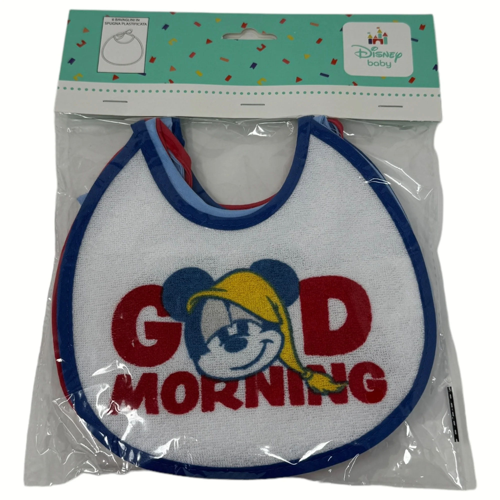 Wd9555 Bav – -disney Collection- 6 Pezzi Bavetta Neonato In Spugna E Retro In Pvc Con Laccetti Maschietto