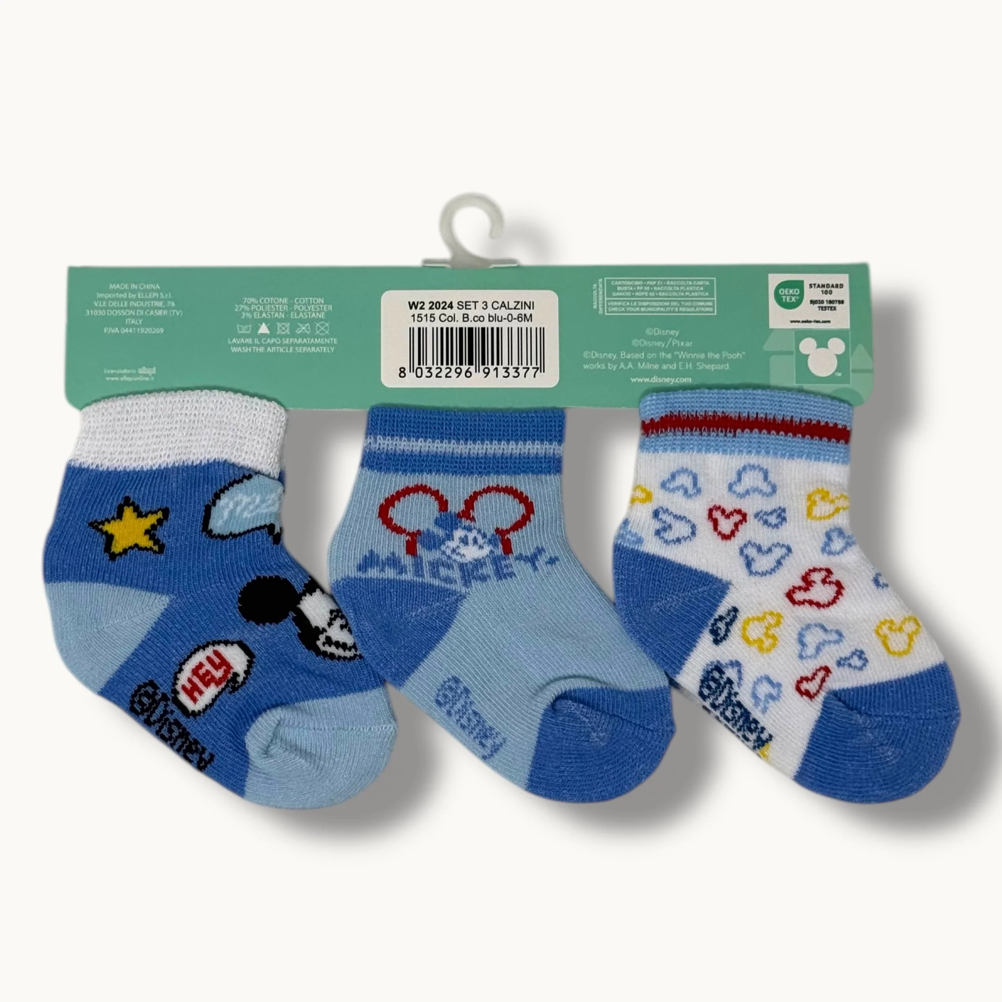 W22024 Cal – -ellepi Disney- Confezione 3 Paia Calzini Prima Nascita Disney In Cotone Fantasy Disney