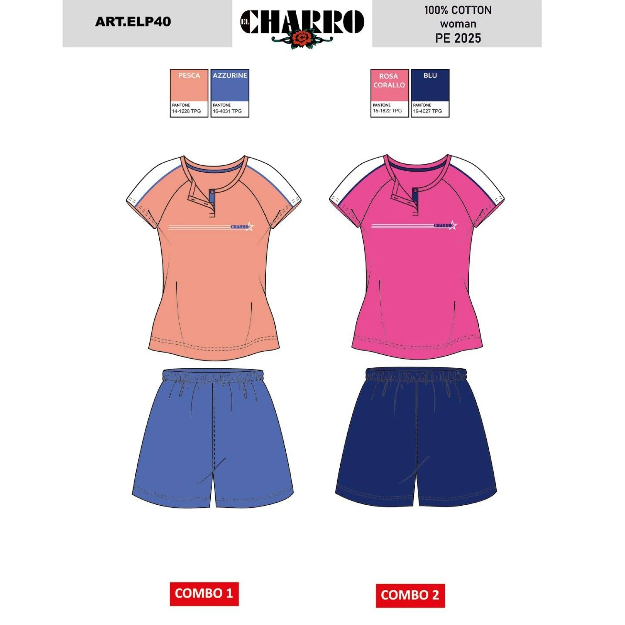 El Charro Estate Pigiama Donna Serafino Corto Mezza Manica Puro Cotone Con Stampa Art. Elp40