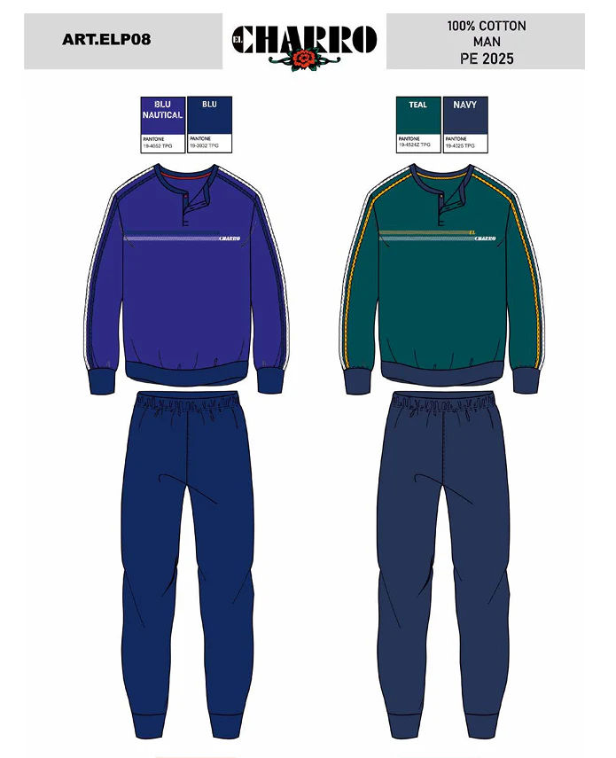 El Charro – Pigiama Con Collo Serafino Uomo Lungo In Jersey Puro Cotone Con Stampa Art. Elp08