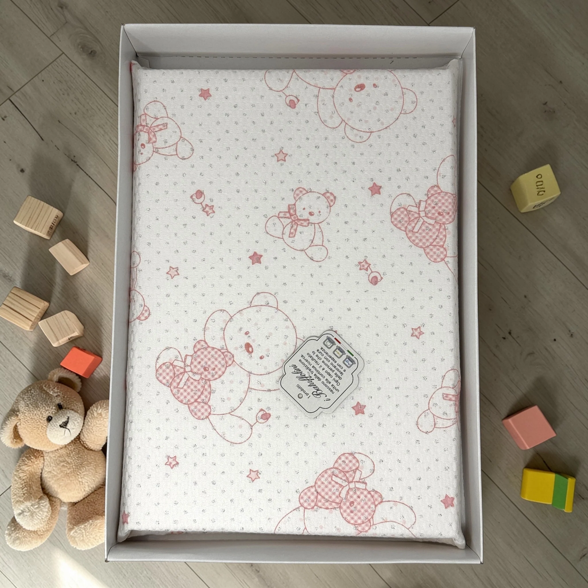 B0604-2 – I Batuffolini Idea Regalo Copertina Culla Cotone Stampata Con Lurex