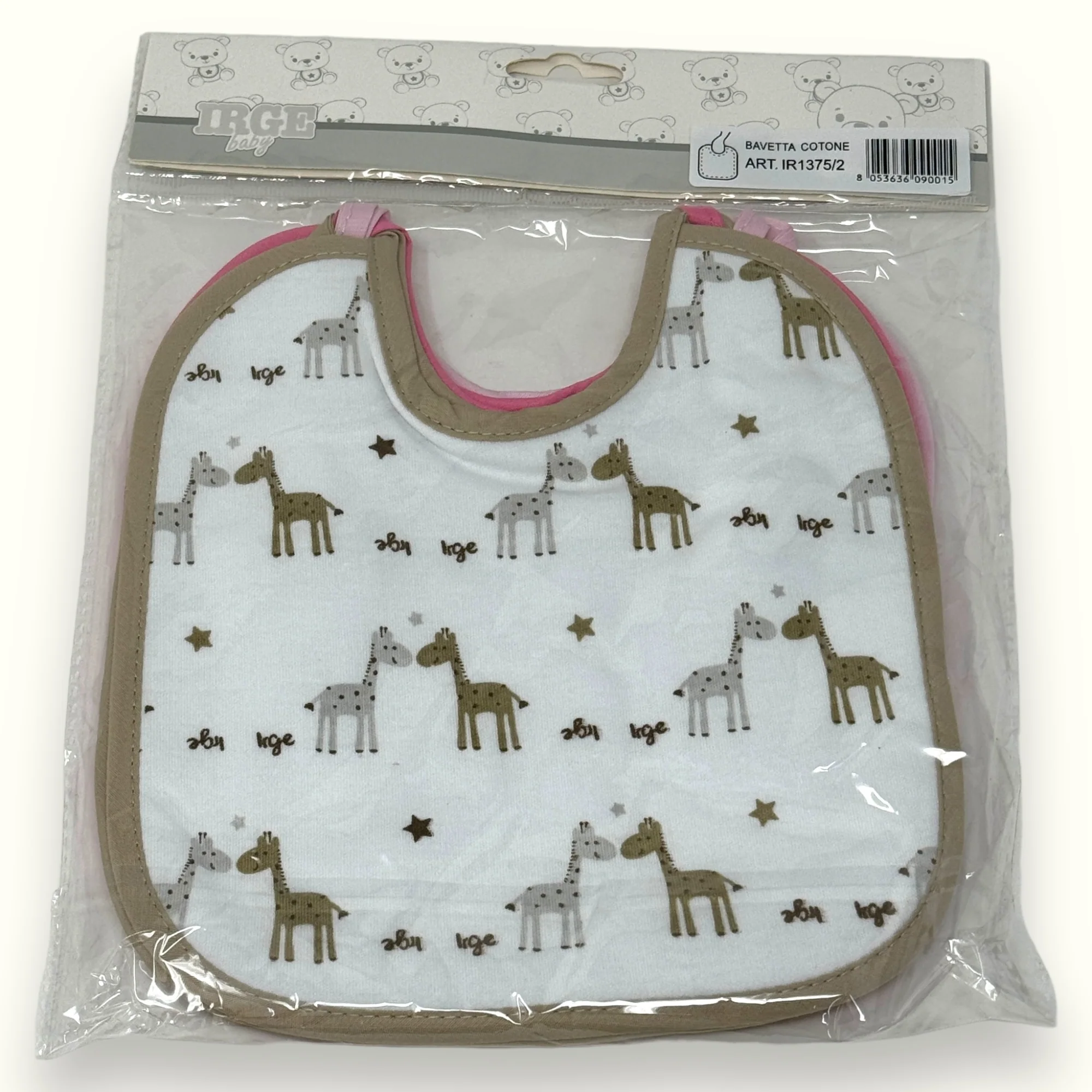 Ir1375-2 Bav – -irge Baby- 6 Pezzi Bavetta Baby In Puro Cotone Stampato Con Laccetti