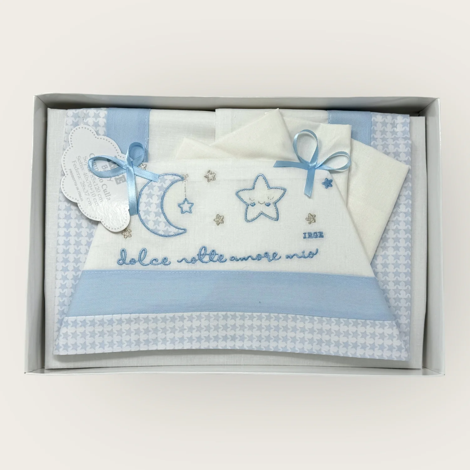 bicc07 – Irge Baby Completo Culla 3 Pezzi -sotto+sopra+federa Ricamato In Puro Cotone Misura 90×120