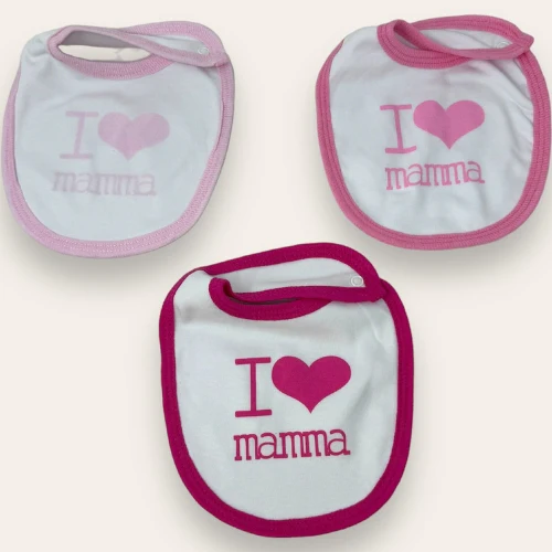 281-1 Bav – -irge- Bavetta Neonata Stampata -i Love Mamma- In Puro Cotone Con Clips