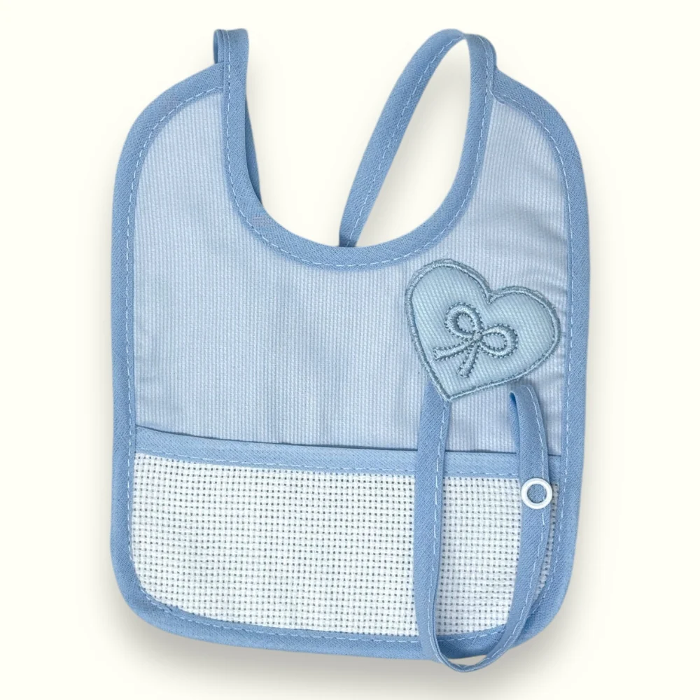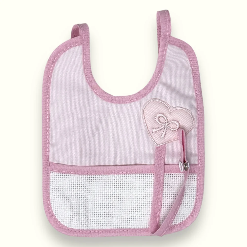 Ir990-1 Bav – -irge Baby- Bavetta Prima Nascita In Piquet Tela Aida Da Ricamo 100% Cotone Con Portaciuccio
