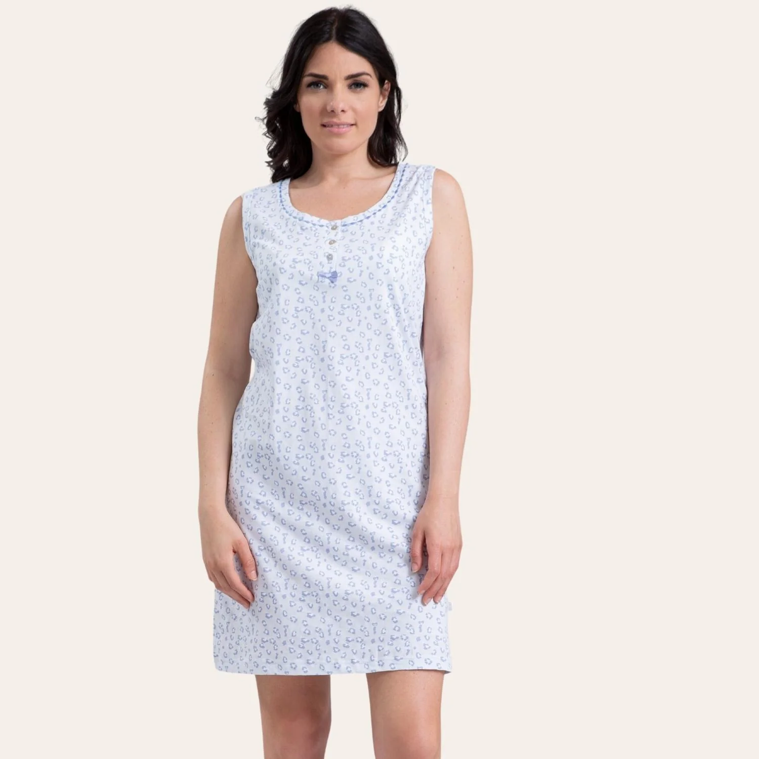 Ir1782 Canotta – Irge Camicia Da Notte 3 Bottoni Donna Spalla Larga In Jersey Puro Cotone