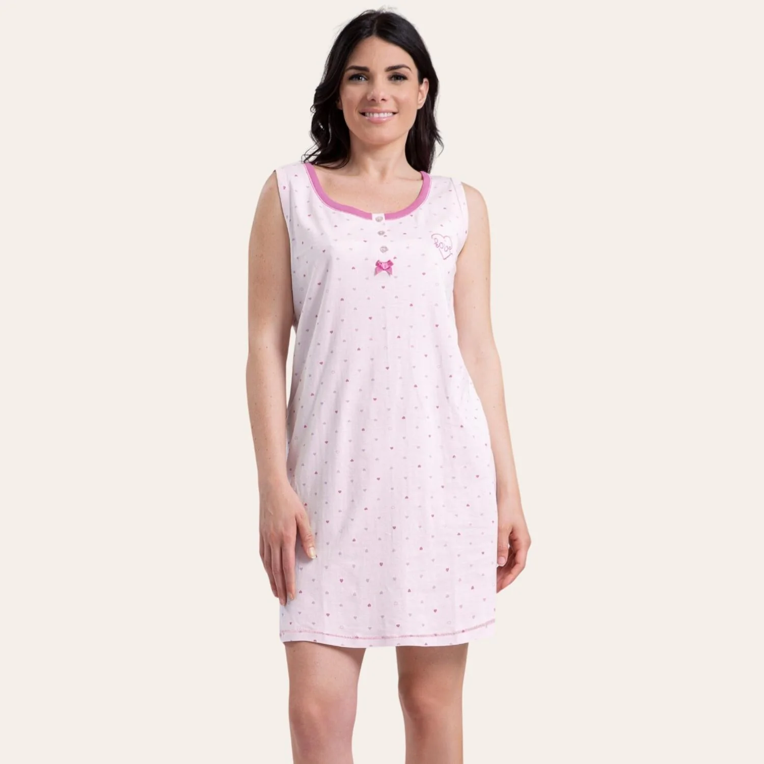 Ir1784 Canotta – Irge Camicia Da Notte 3 Bottoni Donna Spalla Larga In Jersey Puro Cotone