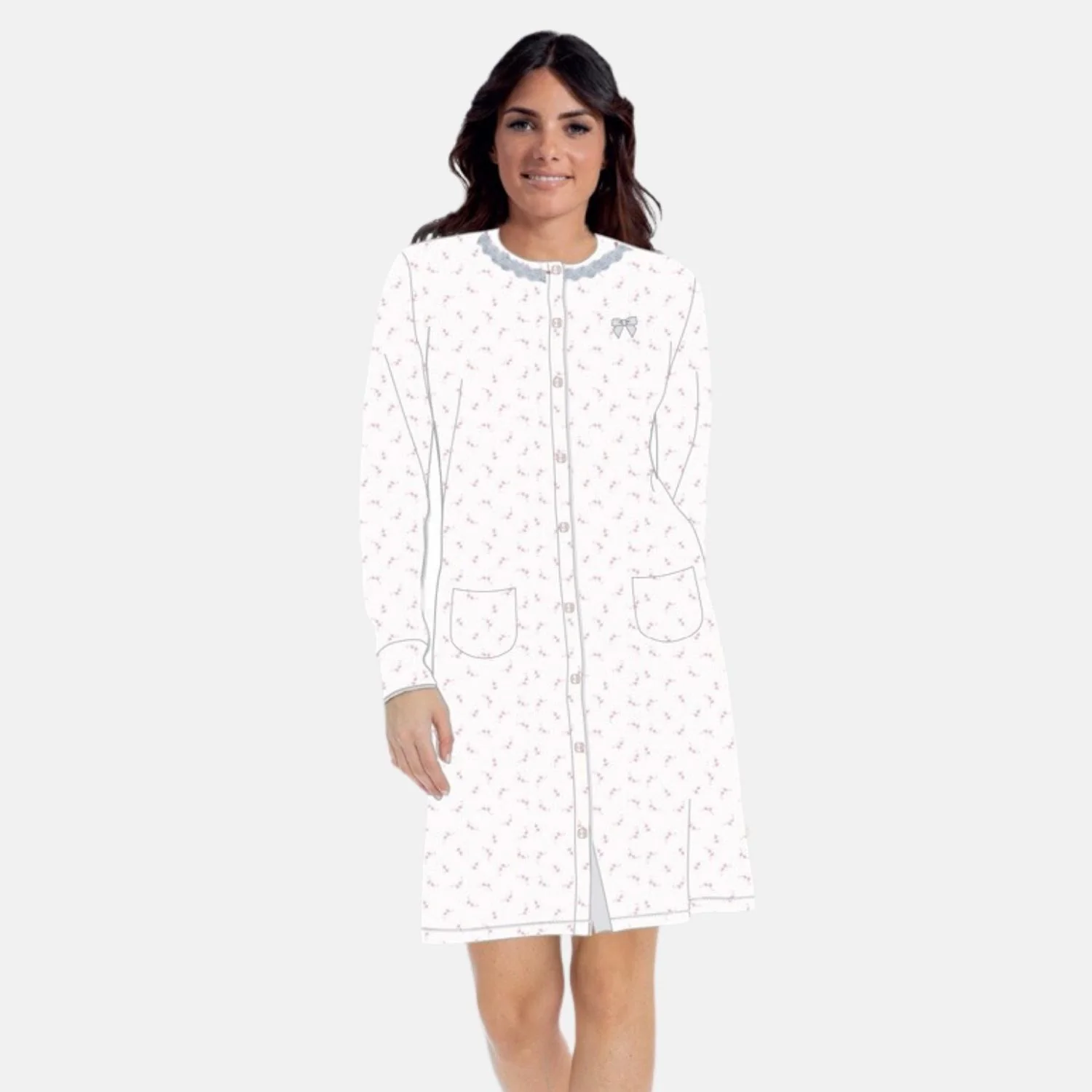 El Charro – Pigiama Donna Serafino Lungo In Jersey Puro Cotone Con Stampa Art. Elp30