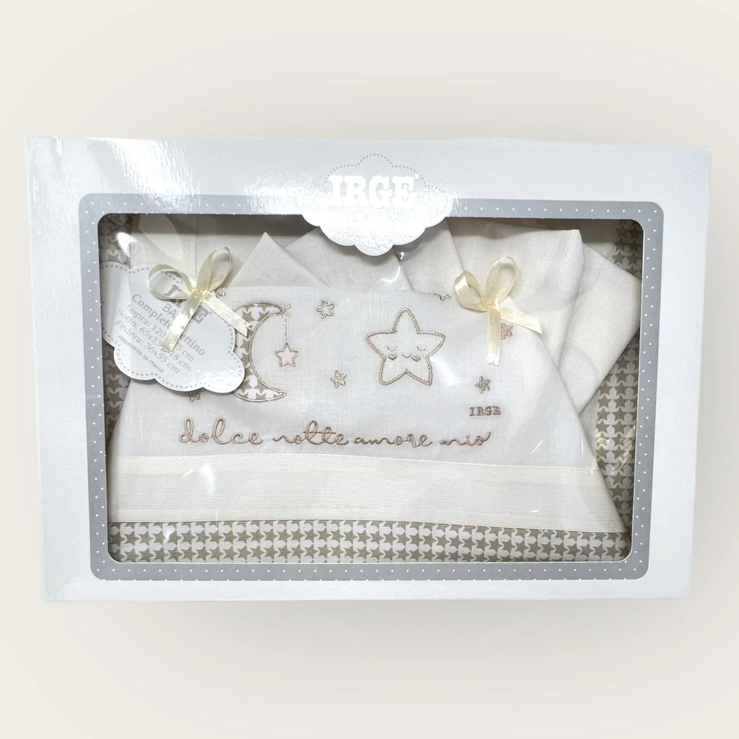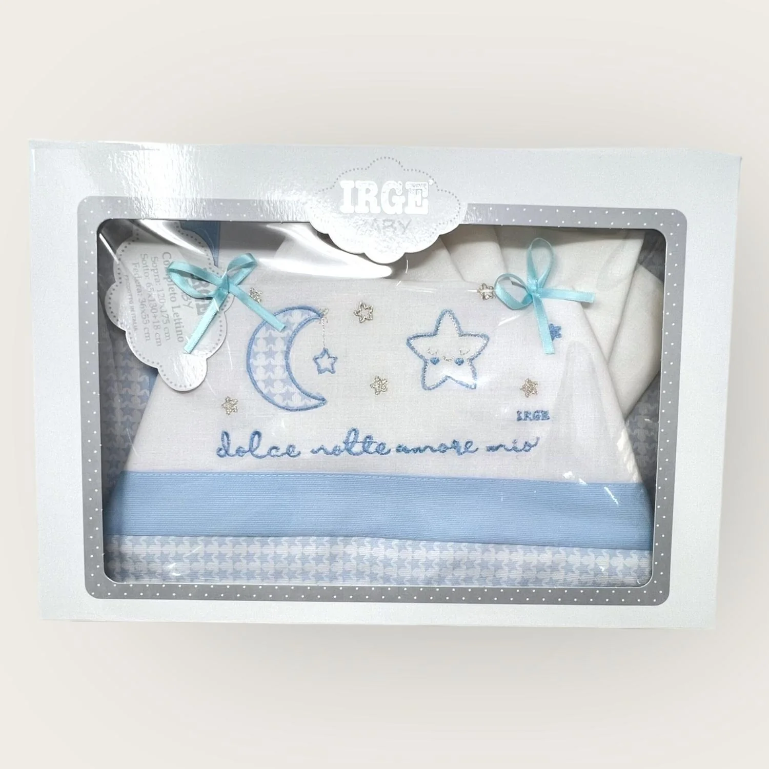 Bicl07 – Irge Completo Lenzuolini Sotto+sopra+federa Per Lettino In Puro Cotone Ricamato 120×180
