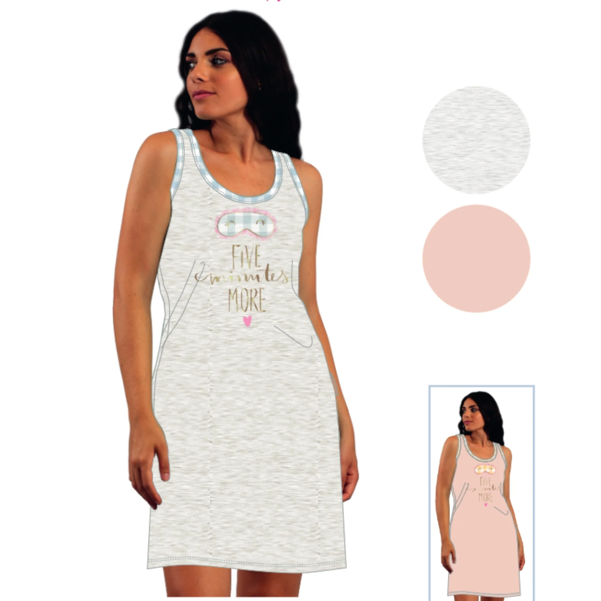 Cdmc191 Can – -irge Estate- Camicia Da Notte Donna Calibrata Spalla Larga Stampata In Puro Cotone