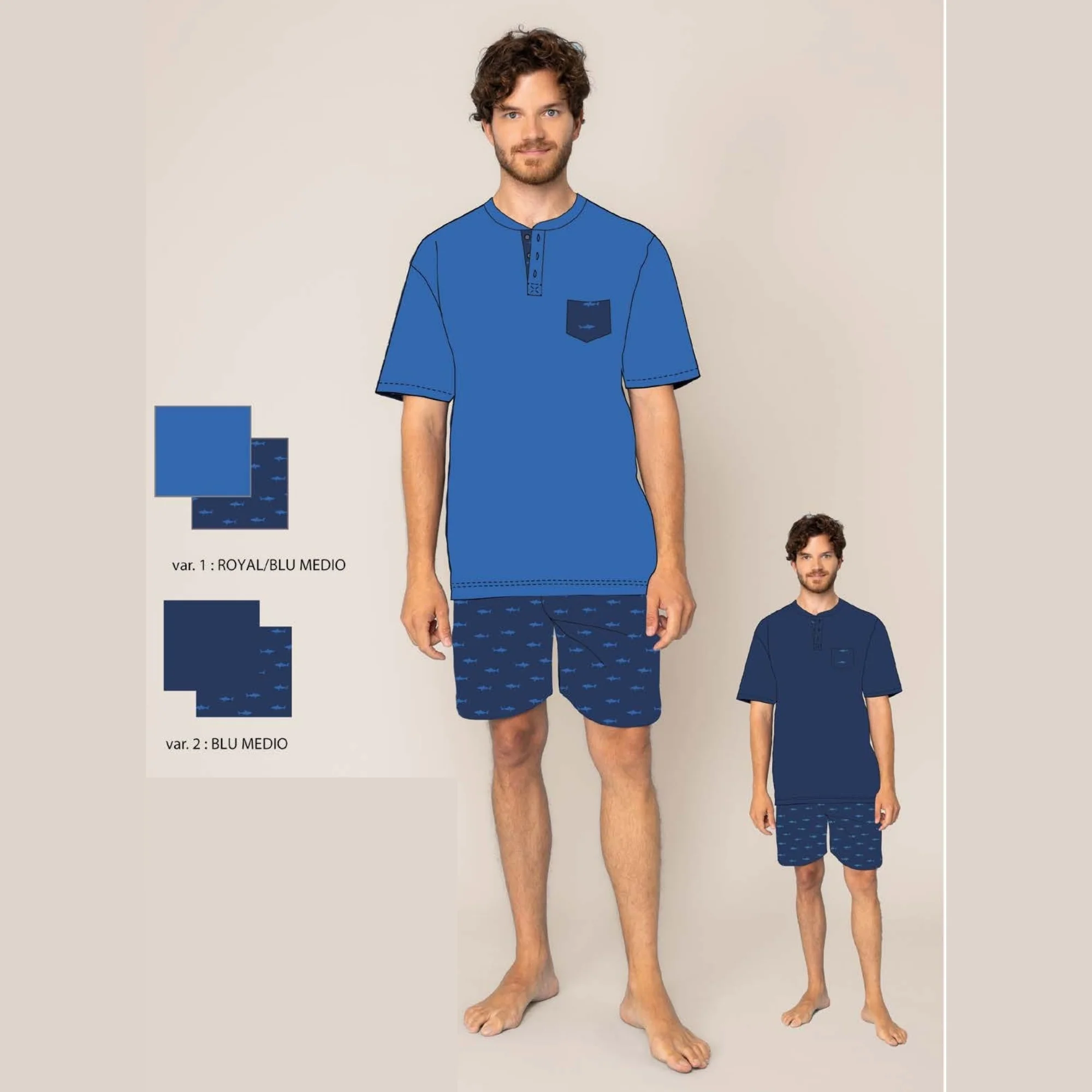 Irge Estate Pigiama Uomo Corto Mezza Manica Serafino In Puro Cotone Con Taschino Art. Mic2378