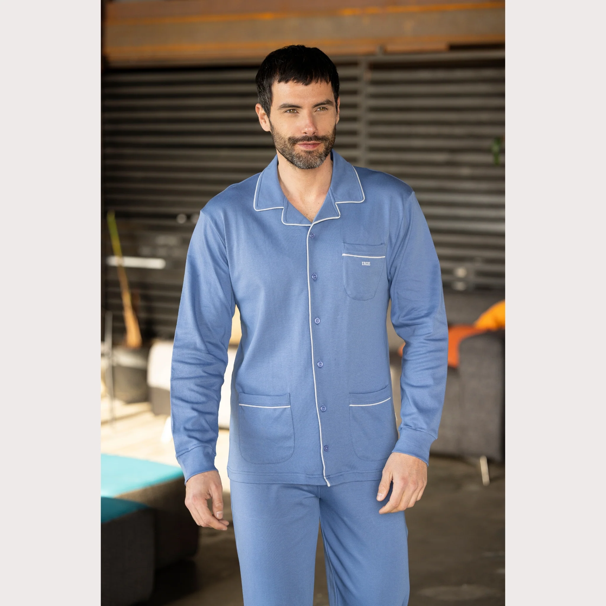 Irge Inverno Uomo Pigiama Aperto Avanti In Caldo Cotone 100% Tinta Unita Art. Iri2389