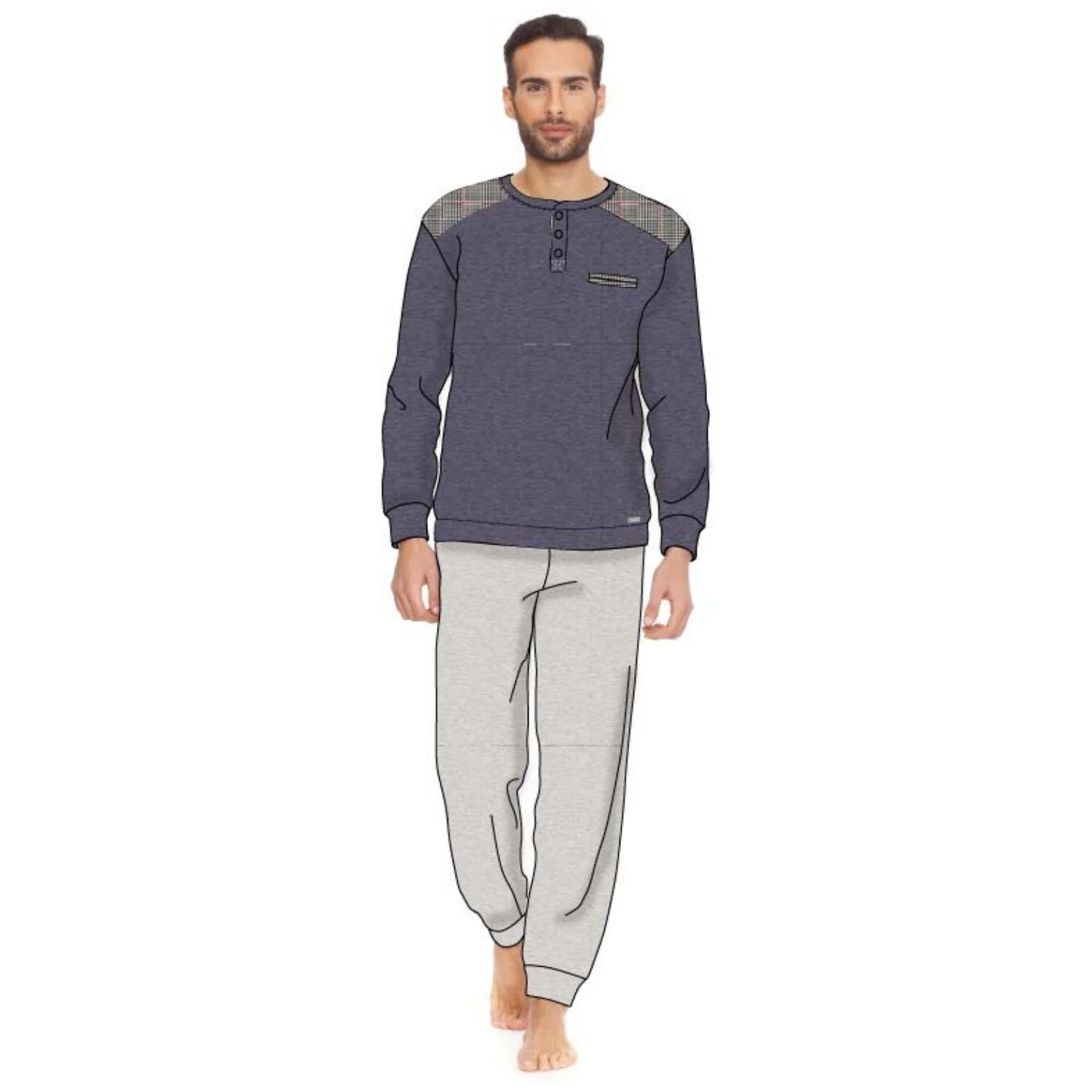 Mi1366 Pigiama – Irge Man -pigiama Uomo Caldo Cotone 100% Serafino 3 Bottoni Con Taschino