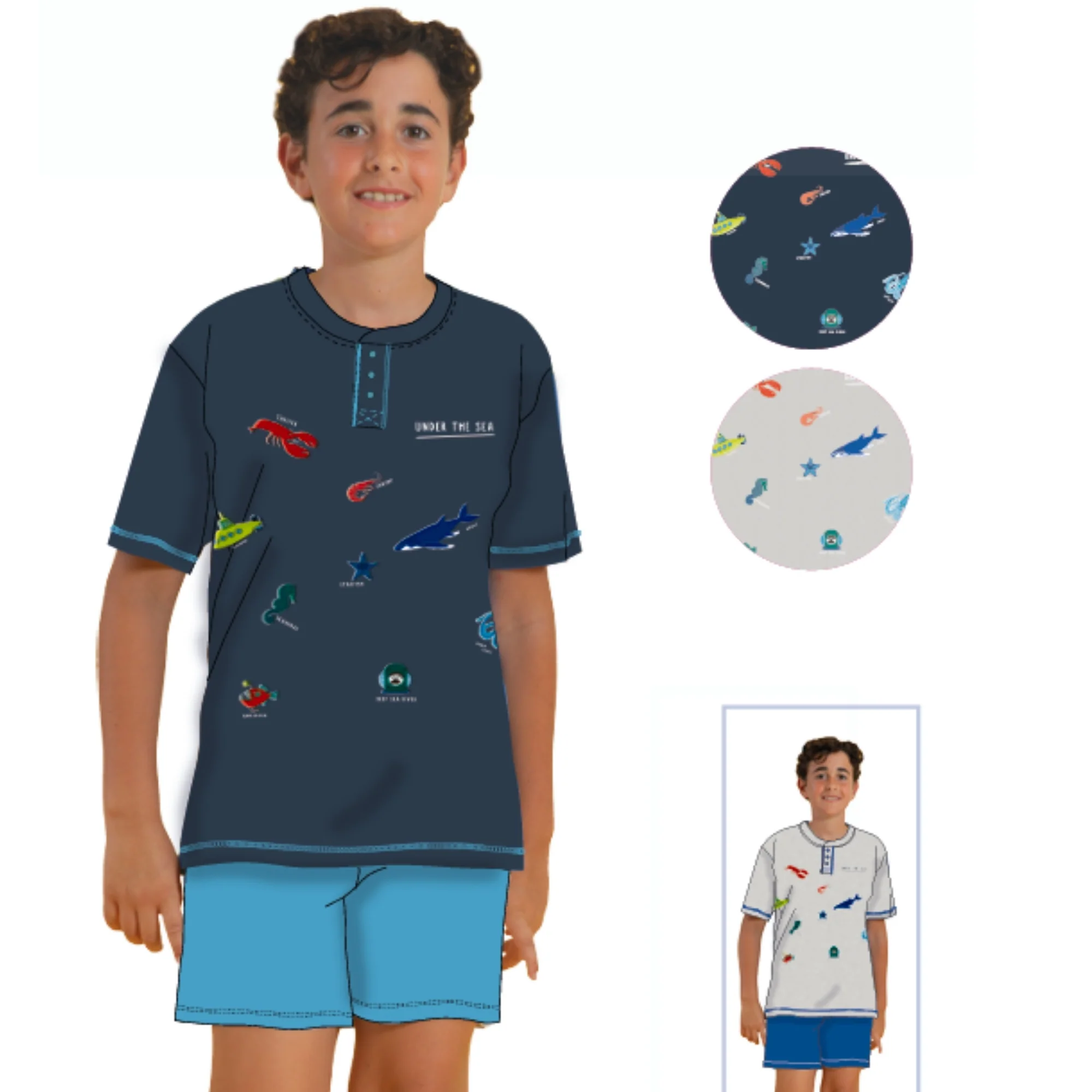 Ikc401 Pig – -irge Estate- Pigiama Bimbo Corto Mezza Manica Con Stampa In Puro Cotone