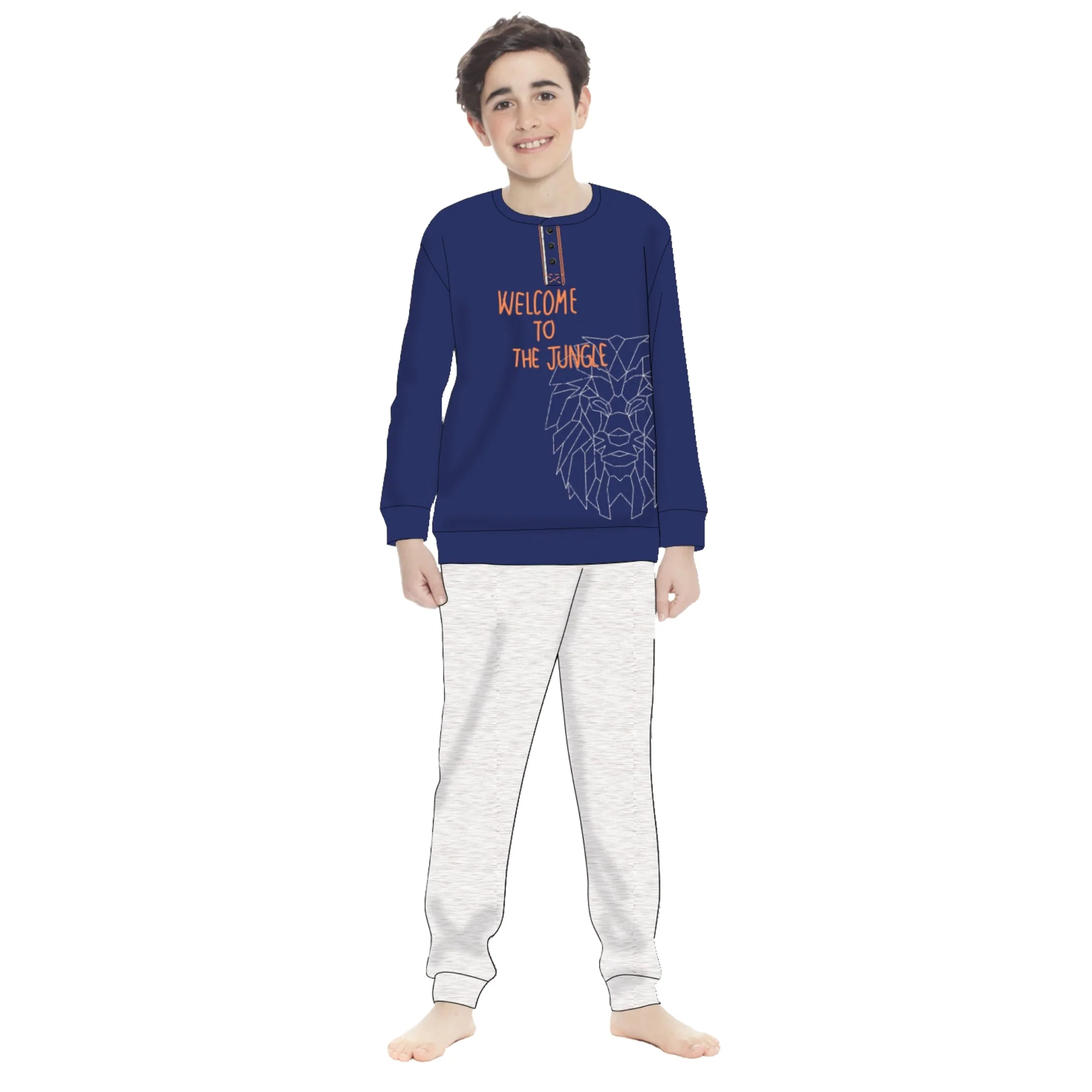 Ik317 Pig – -irge Kid- Pigiama Bimbo Lungo Serafino 3 Bottoni Con Stampa In Puro Cotone