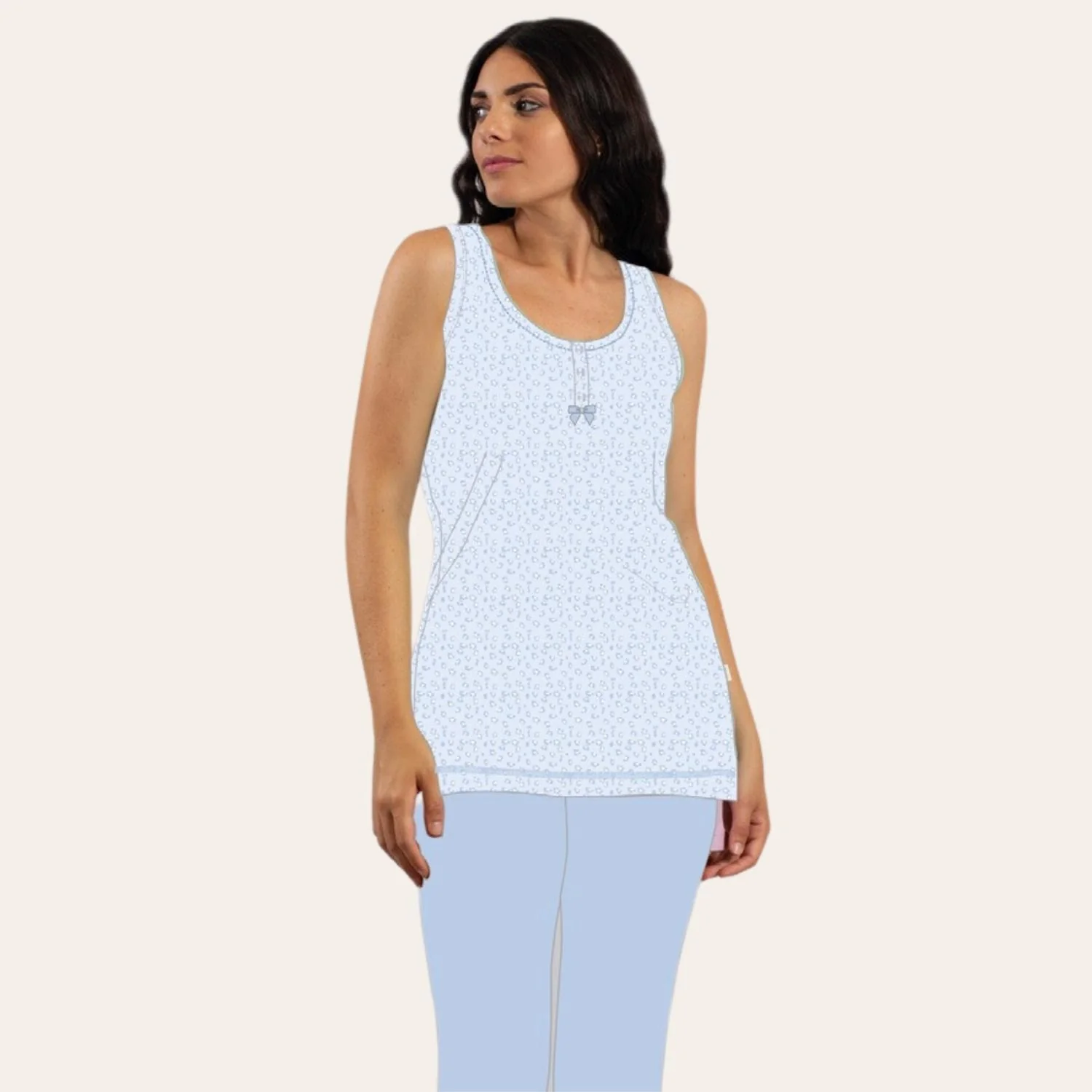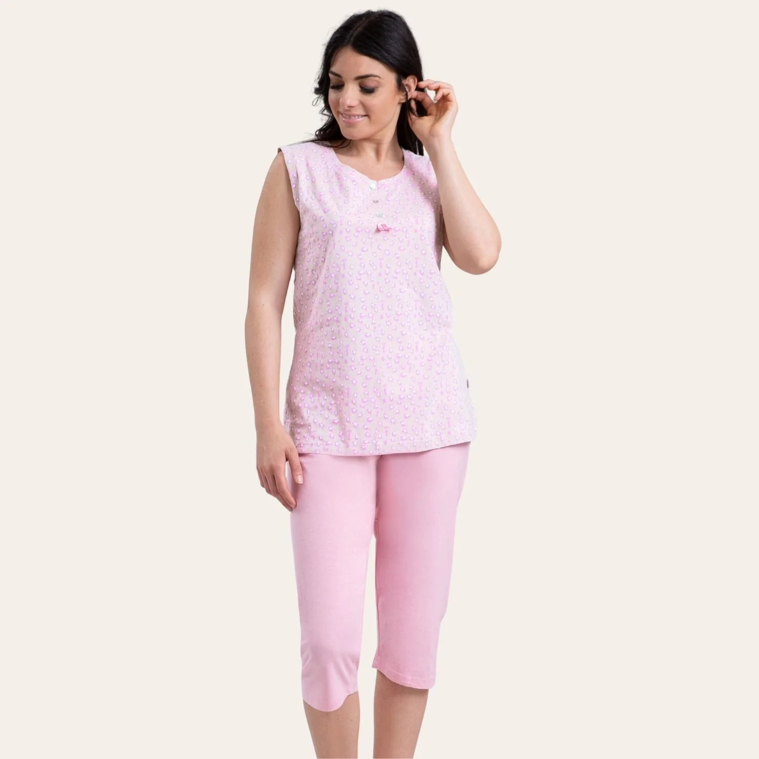 Cd161 Pig – Irge Pigiama Donna Calibrato Pinocchietto Spalla-larga In Jersey Puro Cotone