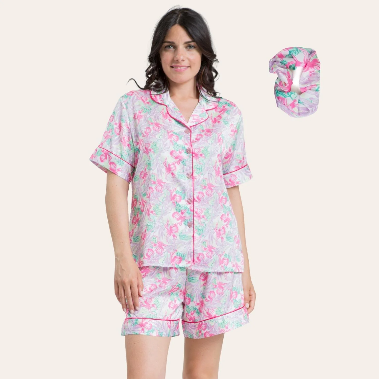 Ir1832 Pigiama – Irge Pigiama Donna Corto In Raso Fantasia Mezza Manica Aperto Con Collo