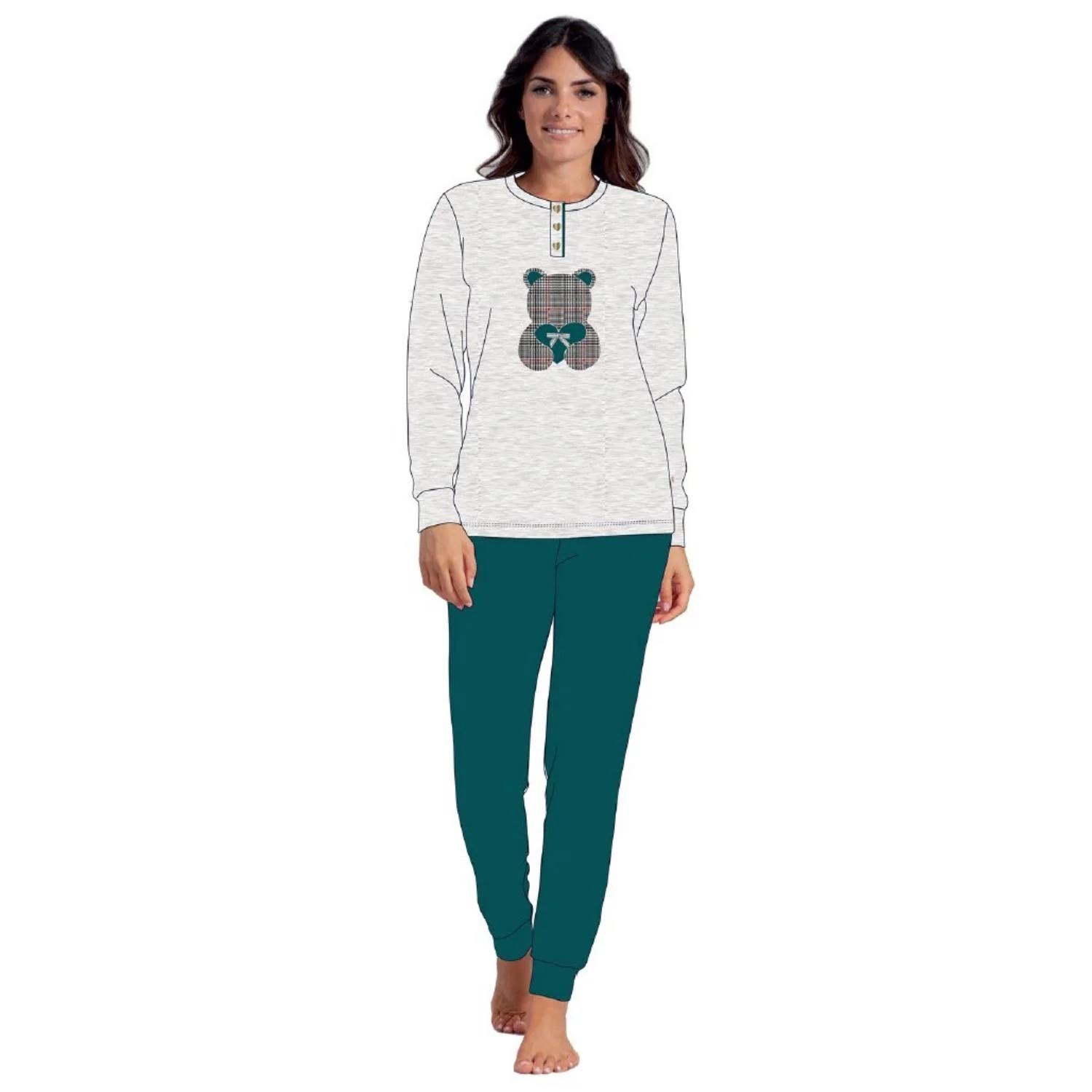 Mi1676 – Irge Pigiama Donna Serafino Ricamato In Caldo Cotone 100%