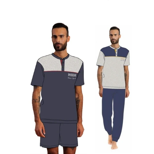 Tu38 Pig – Irge Pigiama Uomo 3 Pezzi M/manica+pantalone Lungo+pantalone Corto In Puro Cotone