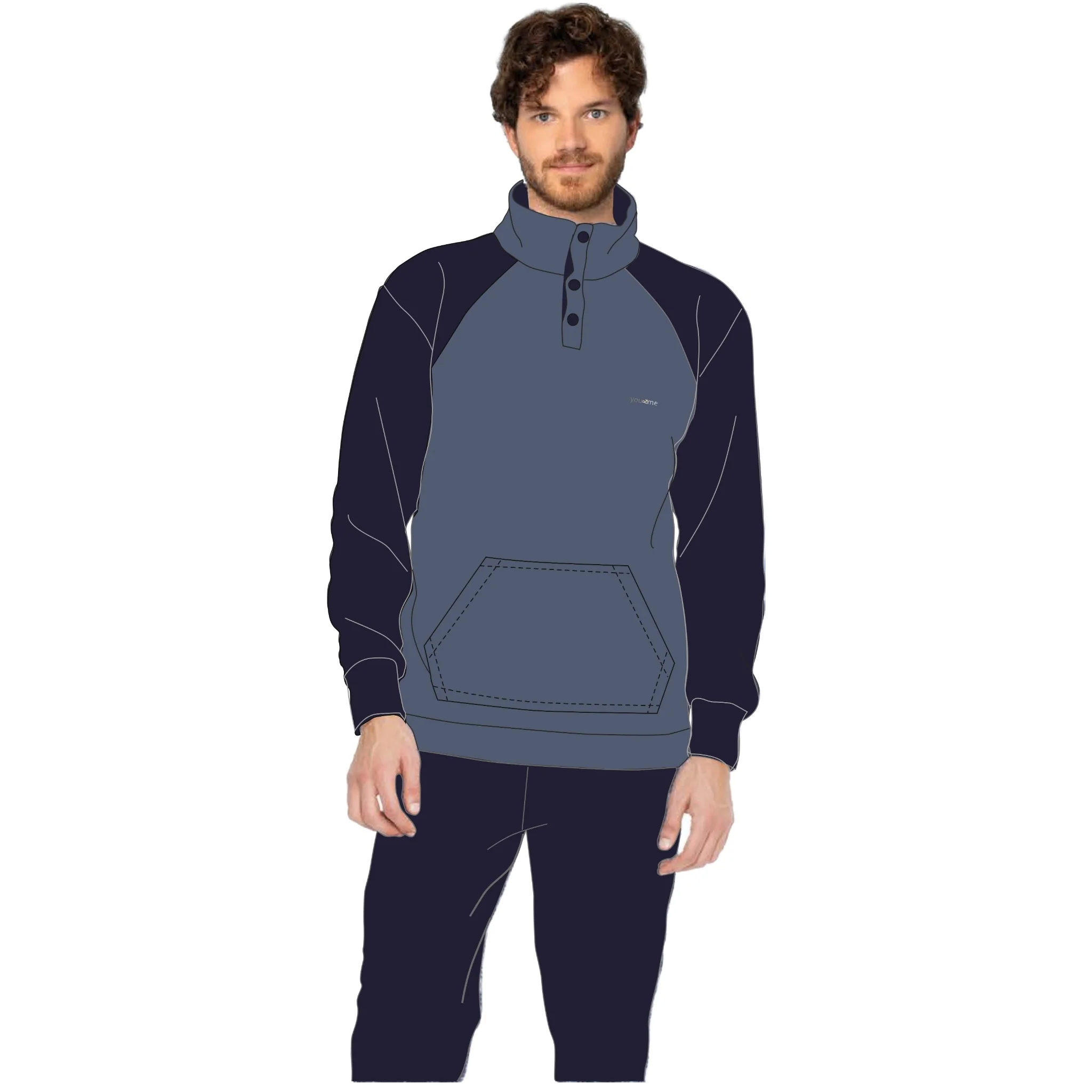 Y&mp597 Pig – -irge Uomo Pile- Pigiama 3 Bottoni Lupetto In Pile Con Marsupio E Ricamo