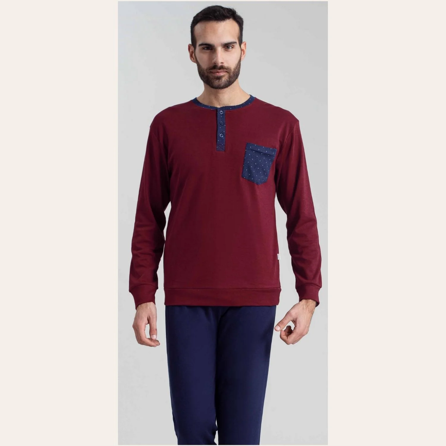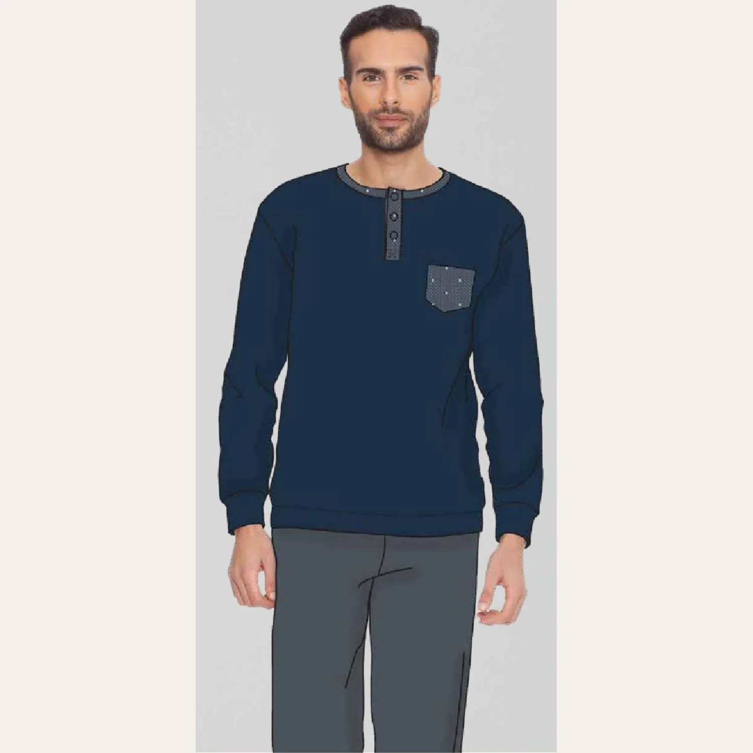 Ir1851 – Irge Pigiama Uomo Serafino In Caldo Cotone 100% Con Taschino