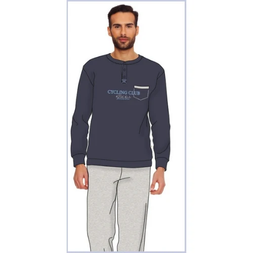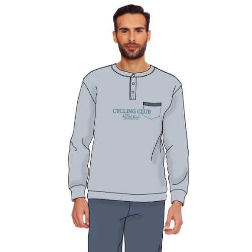 Mil2061 Pig – -irge Primavera – Pigiama Serafino Uomo Lungo In Jersey Puro Cotone Con Taschino