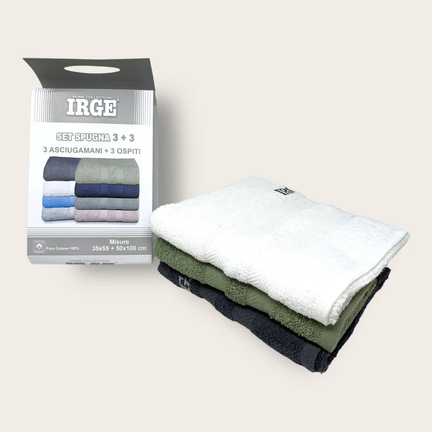 3+3 Irge – Irge Set -3 Asciugamani + 3 Ospiti Con Ricamo In Spugna Cotone 100% Tinta Unita