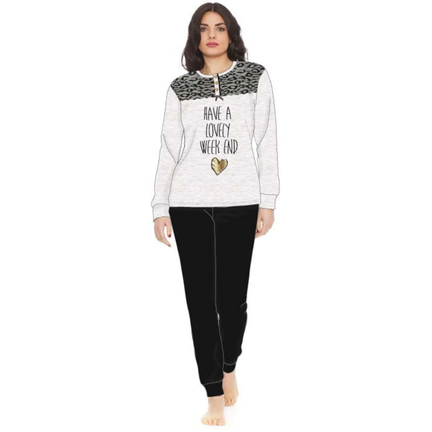 Irge Woman -pigiama Donna In Caldo Cotone 100% Serafino 3 Bottoni Con Inserto In Pizzo Art. Mi1427