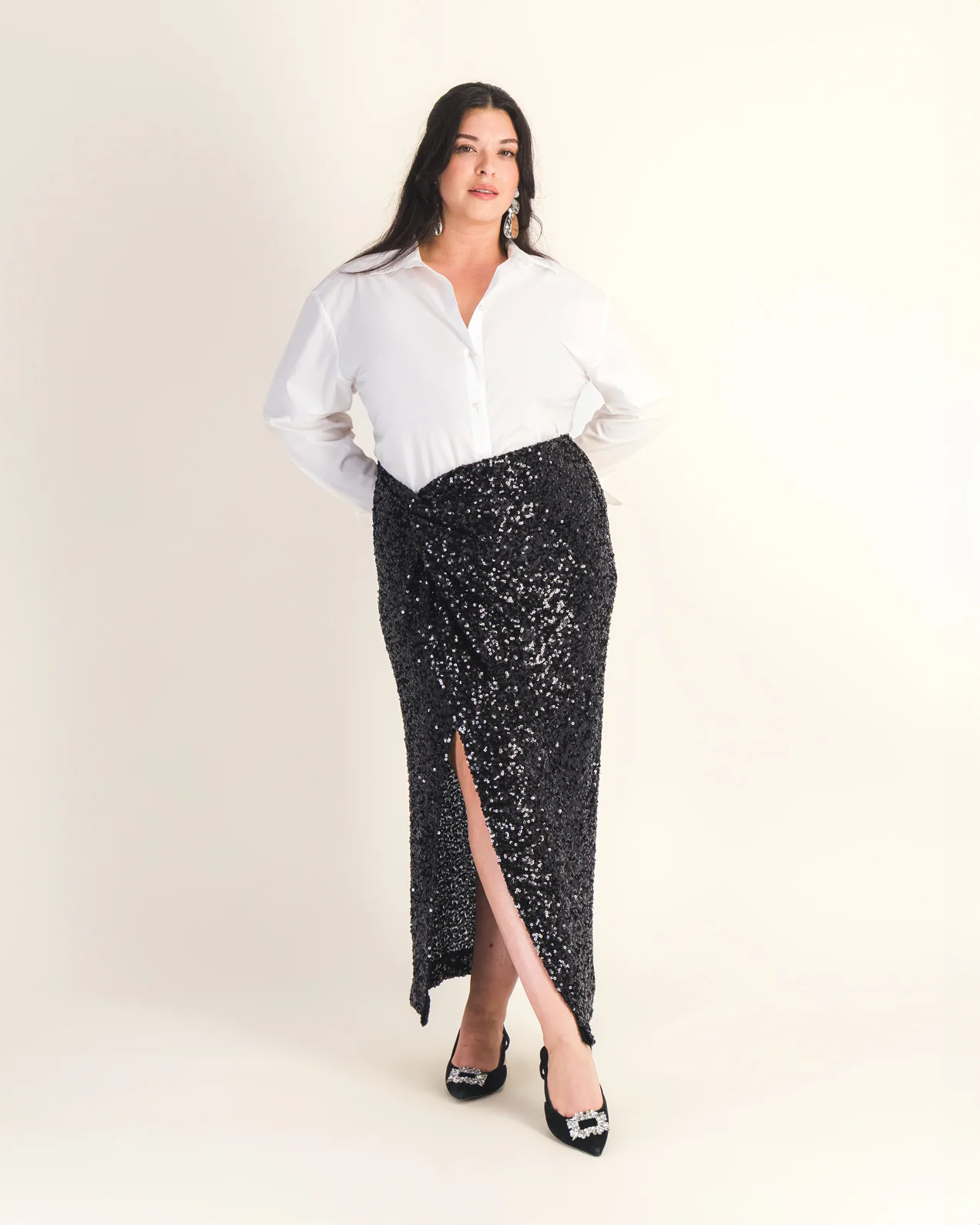 • Jupe midi nouée sur le coté devant• Matière sequins• Maille gainante avec élasthanne très confortable• Fond de jupe courte devant