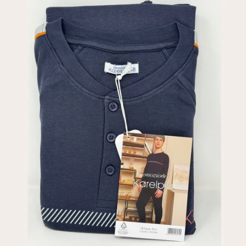Se5446plu – Karel Pigiama Uomo Serafino Con Stampa In Caldo Cotone Pantalone Unito