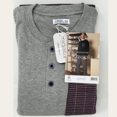 Se5436 – Karel Pigiama Uomo Serafino Con Taschino In Caldo Cotone Pantalone Fantasia