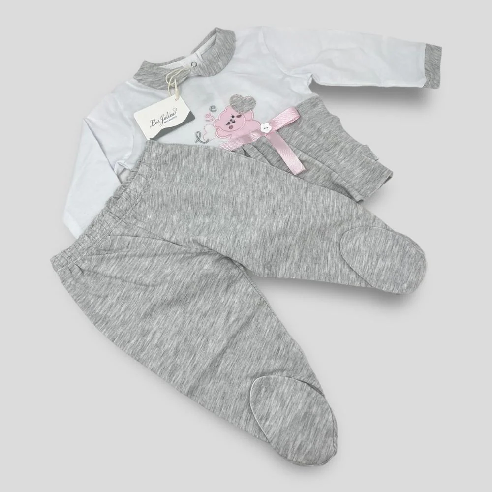 Les Jolies Completo 2 Pezzi Clinico Femminuccia In Puro Cotone Ricamato Art. Lj228-66