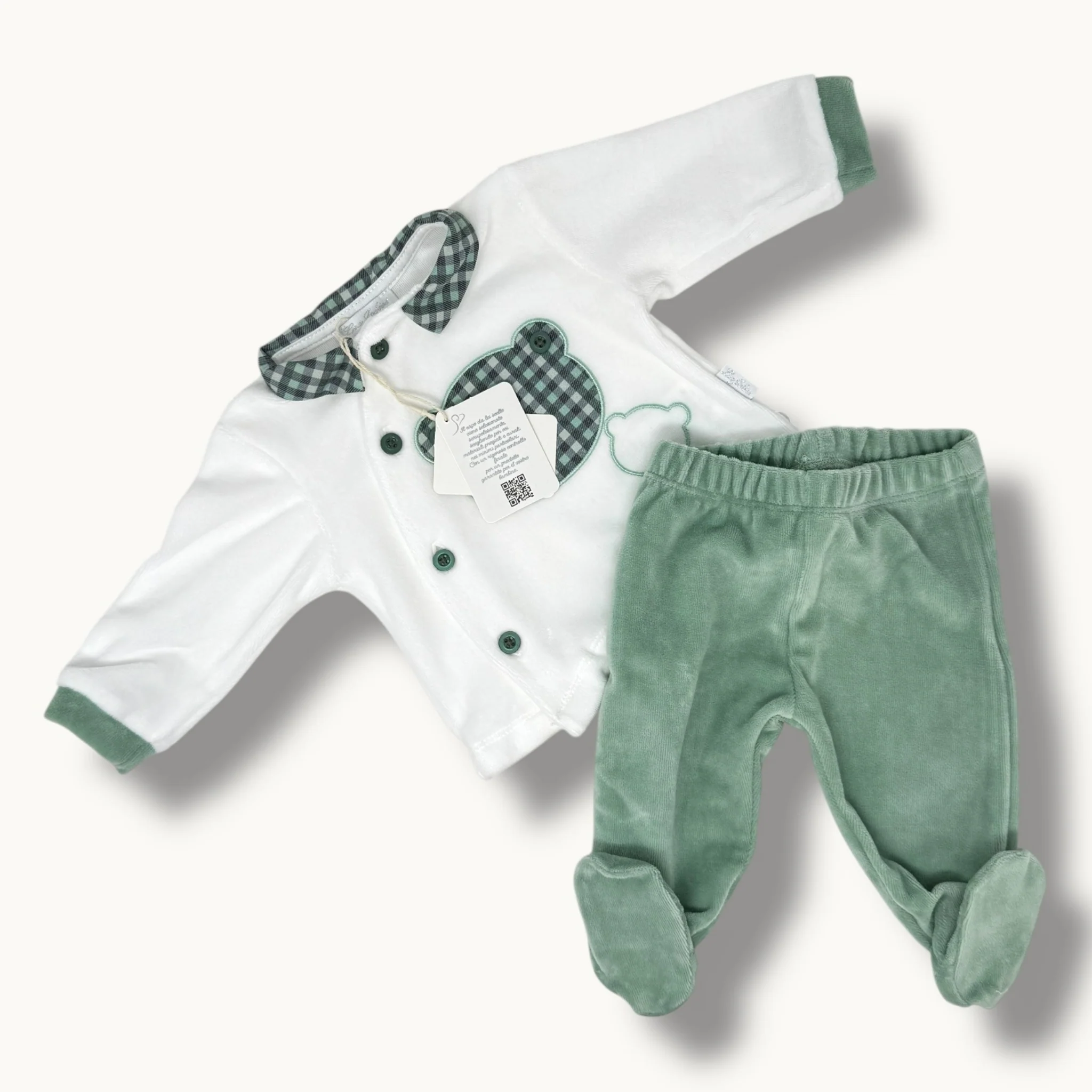 Les Jolies Completo Clinico 2 Pezzi Maschietto In Ciniglia Di Cotone Con Ricamo Art. Lj334-5