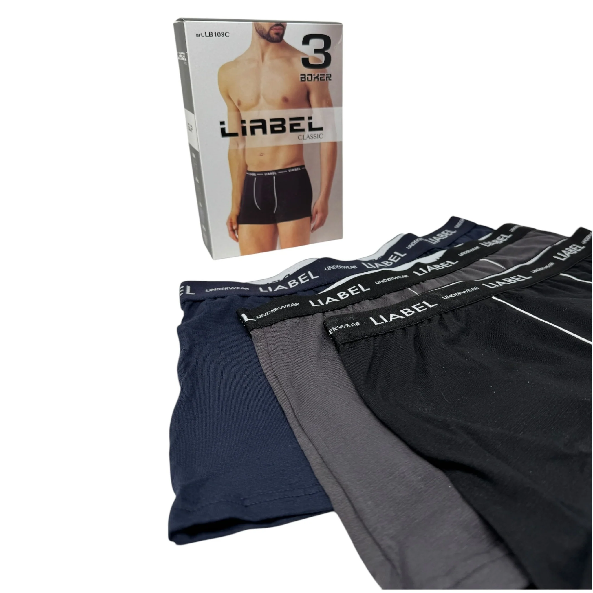 lb108c Boxer – Liabel – Confezione Da 3 Boxer Uomo Elasticizzato Elastico Esterno Cotone Colori Assortiti Art. Lb108c