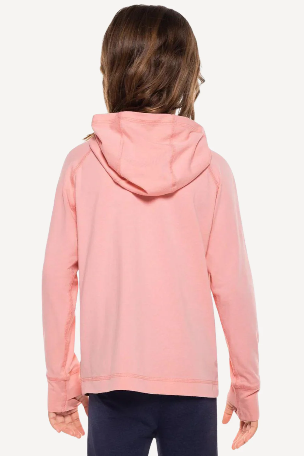 Ha un collo alto, un cappuccio, una comoda tasca e maniche con discrete asole per i pollici.