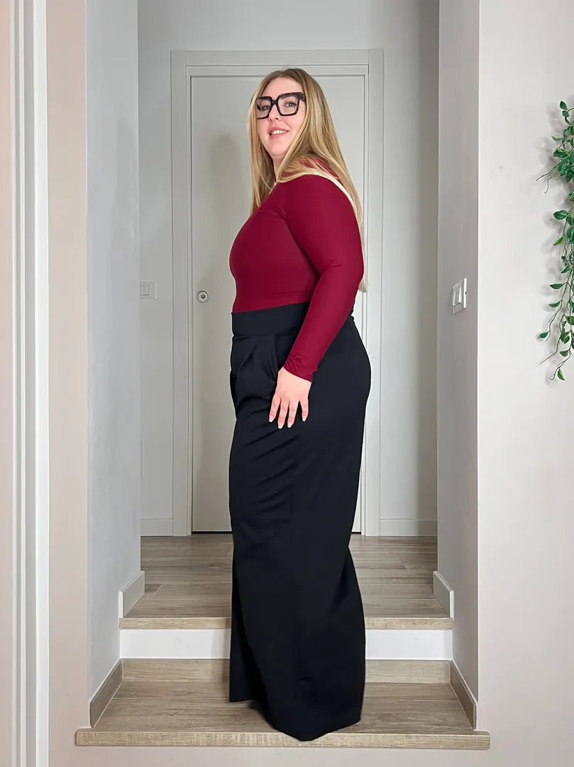 👗 Grazie al suo design reversibile 2in1, puoi indossarla con lo scollo a barca per un tocco raffinato oppure con lo scollo a V per un look più rilassato e casual. Un capo versatile che valorizza ogni silhouette con linee pulite e moderne.