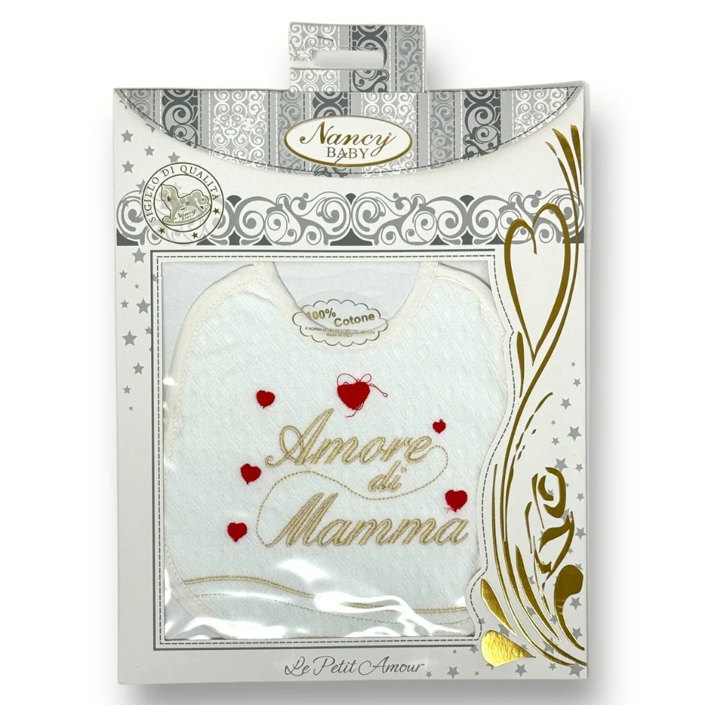 388-1 Bav – -nancy Baby- Bavetta In Puro Cotone Con Ricamo (amore Di Mamma)